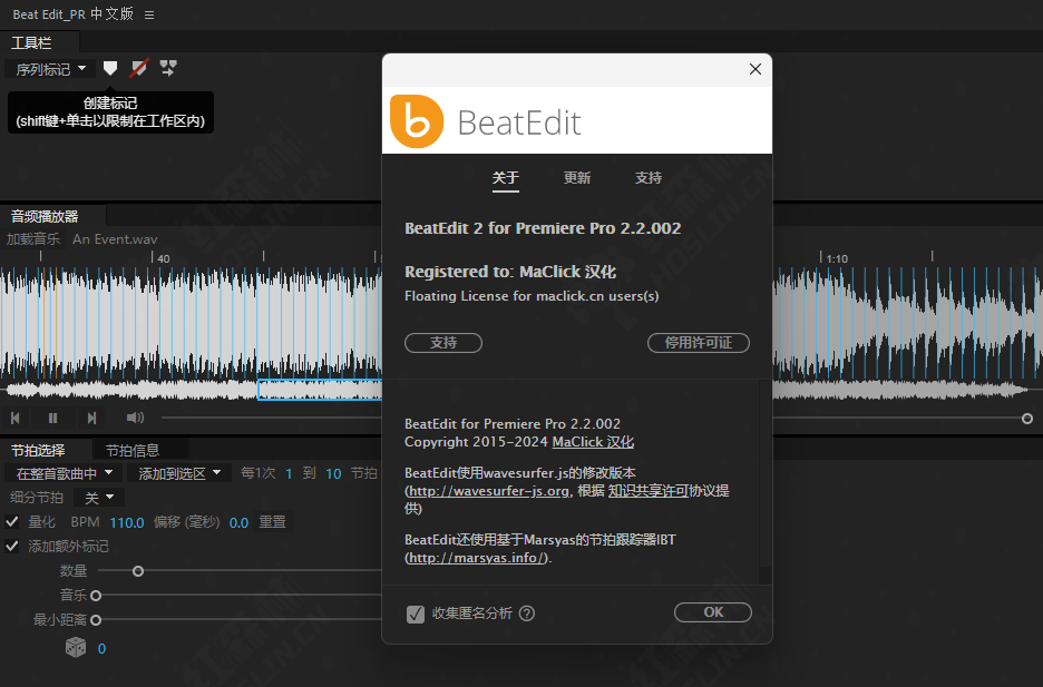 我买的BeatEdit for Premiere Pro v2.2.003没有汉化版 ***