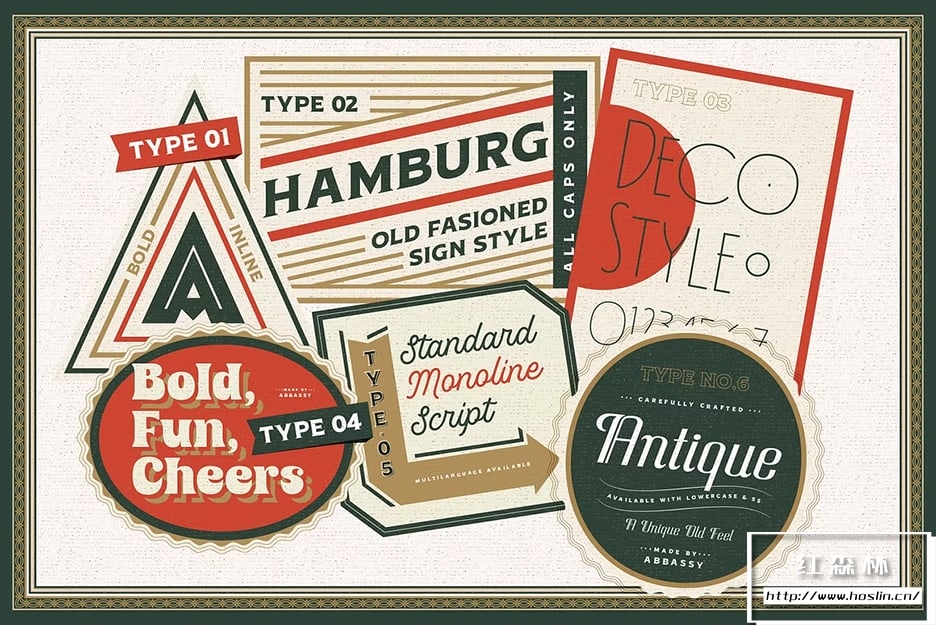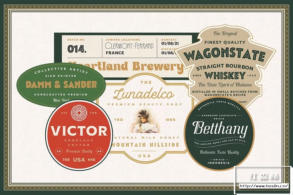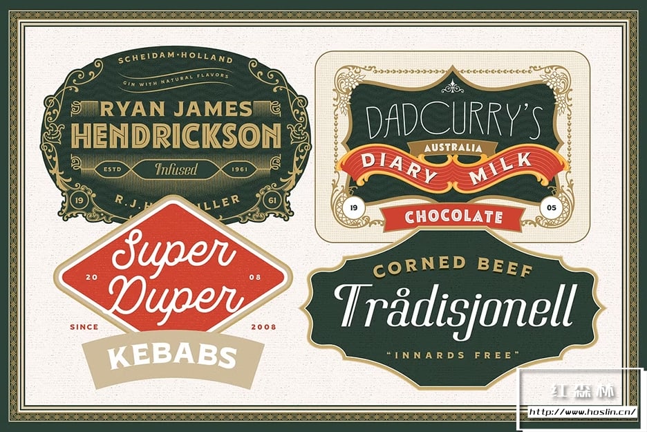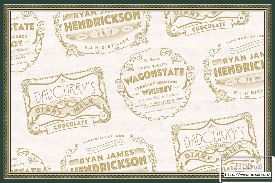 灵感来自一本复古书籍,老式设计,经典休闲复古外观字体。字体上的极简装饰使其看起来更加休闲。字体用途广泛,甚至也适用于现代设计,但仍保留经典外观。创建了 6 种可以相互组合的字体。就像预览图像一样,我已经从维多利亚风格创建到极简主义徽章。它们仍然相互融合。