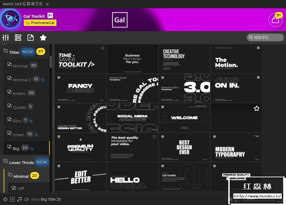 Gal Toolkit 拥有增强视频编辑所需的一切。有超过 1200 种效果、过渡、标题、叠加和元素,所有这些都是由Premiere Gal团队为现代快节奏的 Premiere Pro 编辑器高效设计的。使用简单!只需双击或拖放即可将任何效果应用到时间轴上即可完成。 该工具包整齐地组织在 AtomX 面板中,将 After Effects 的强大功能带入 Premiere Pro,因此您永远不必离开该程序。节省您的时间和麻烦。它非常适合任何宽高比和任何类型的视频。无论您是编辑垂直社交媒体视频、YouTube 视频、广告、音乐视频、婚礼、纪录片、电视真人秀、戏剧还是体育赛事 – 您都会发现可以提升和加快编辑速度的效果。
