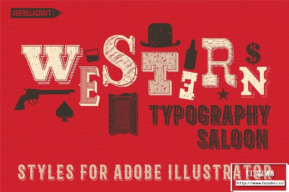 立即获得 38 种复古字体效果,感受狂野西部的感觉!……还有更多!该产品需要与 Adobe Illustrator 配合使用