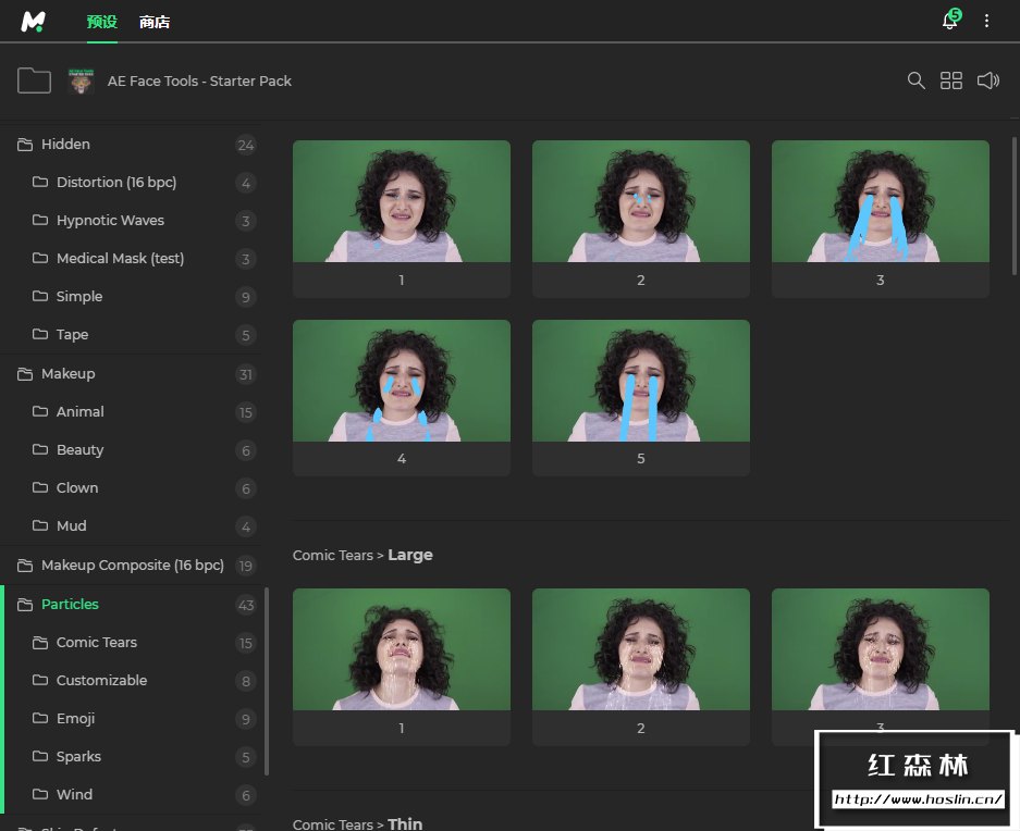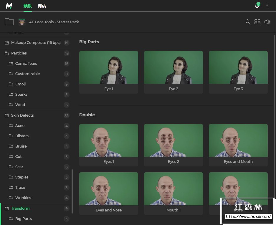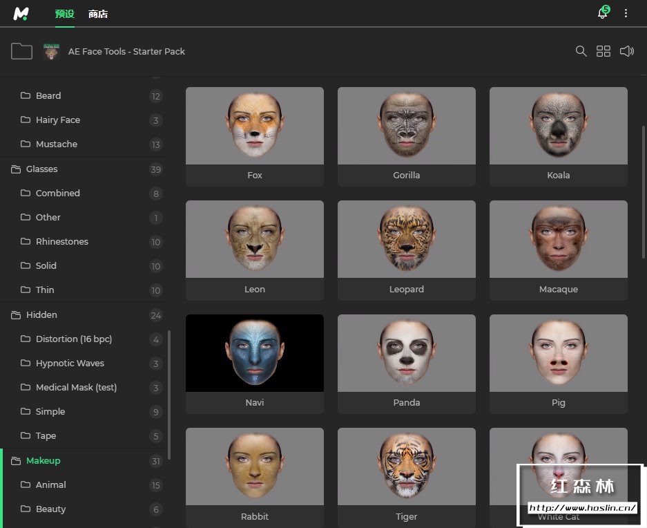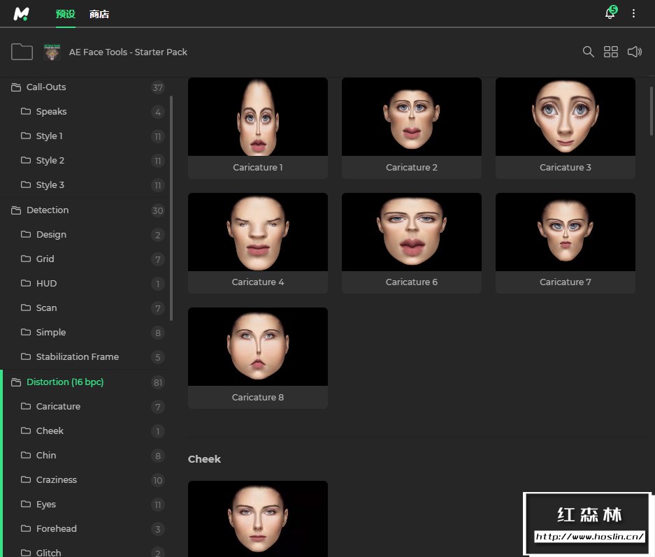 - 添加了新的预设类别:眼睛,彩妆组合,变形毛刺,扭曲漫画