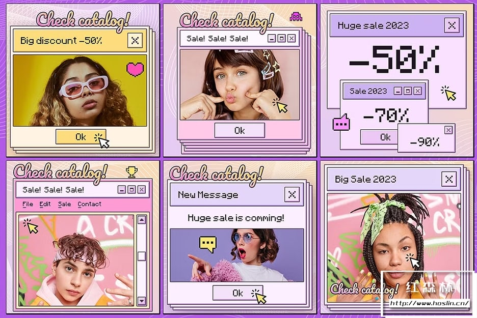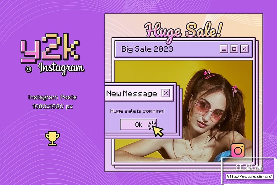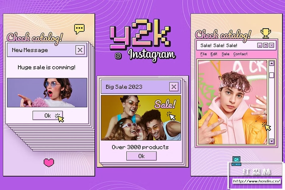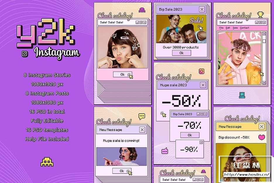 Y2K Instagram 帖子和故事 使用这些有趣的模板回到 2000 年。泡泡糖颜色让您心情愉快。可爱的复古界面元素带有一丝怀旧气息。几分钟内即可创建 Instagram 帖子和故事!此外,还适用于 Facebook!编辑文本并添加照片。非常简单!