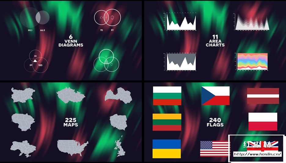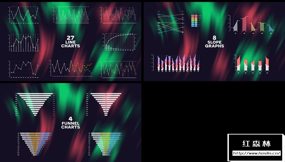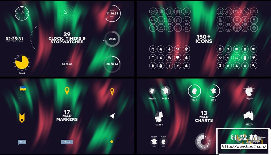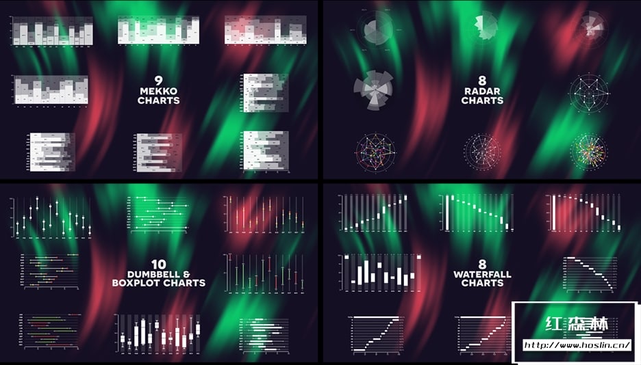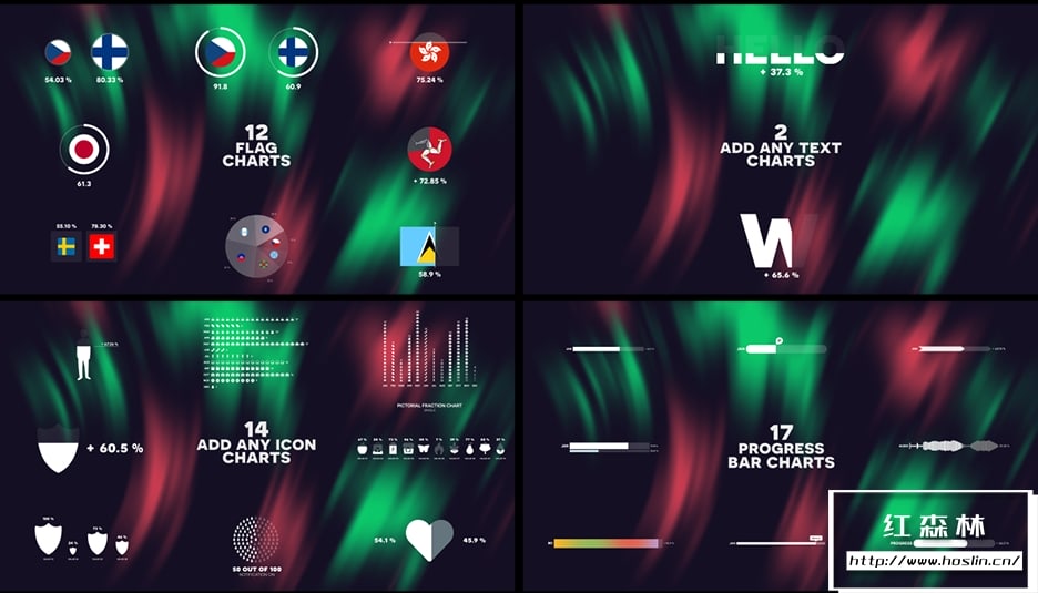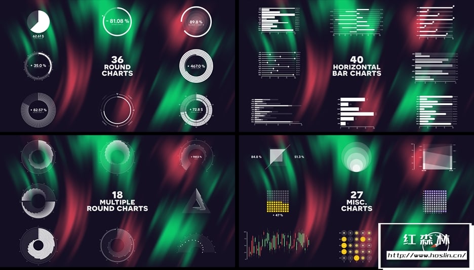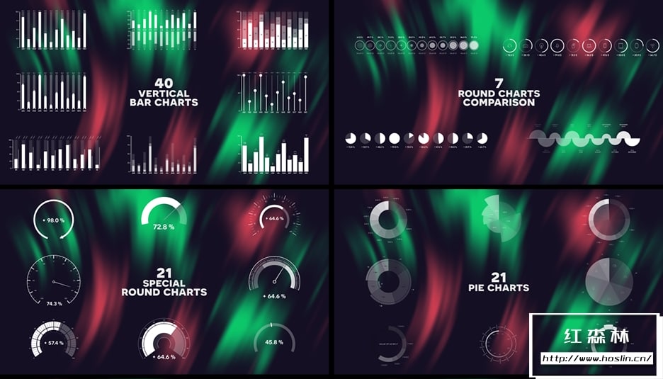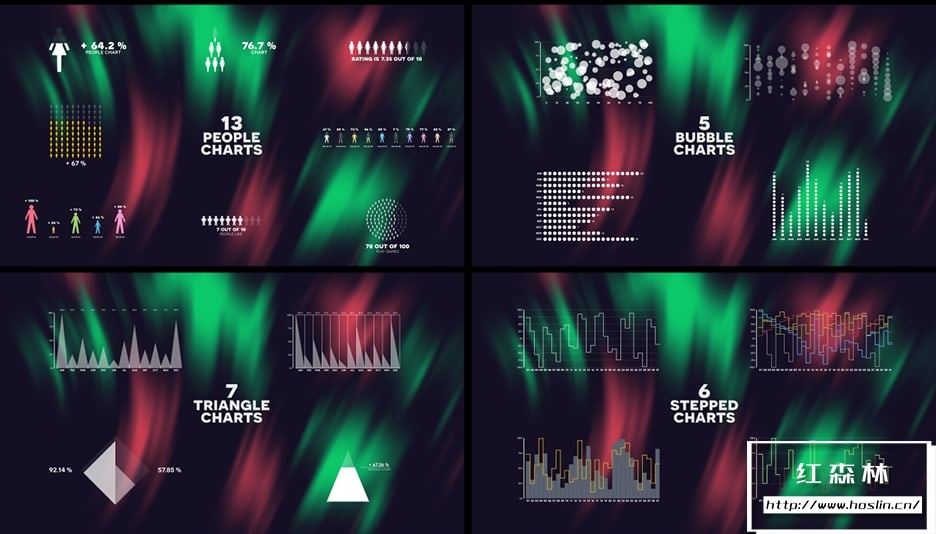 信息图表创建工具包是一款功能强大的工具包,包含 33 个类别的1200多个 信息图表元素。使用、更改和组合它们可在最短时间内获得出色的结果。该项目包含不同类型的图表 – 从标准条形图、折线图和饼图到专门的箱线图、Kagi/蜡烛图和趋势线。使用 After Effects 或 CSV 文件控制值(250 个图表支持逗号分隔值,您可以使用 Excel 甚至记事本快速编辑值)。该项目需要After Effects CC 2015 及更高版本(CSV 图表需要 CC 2020+)