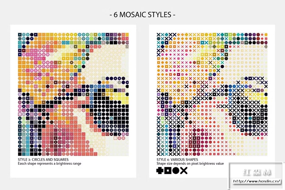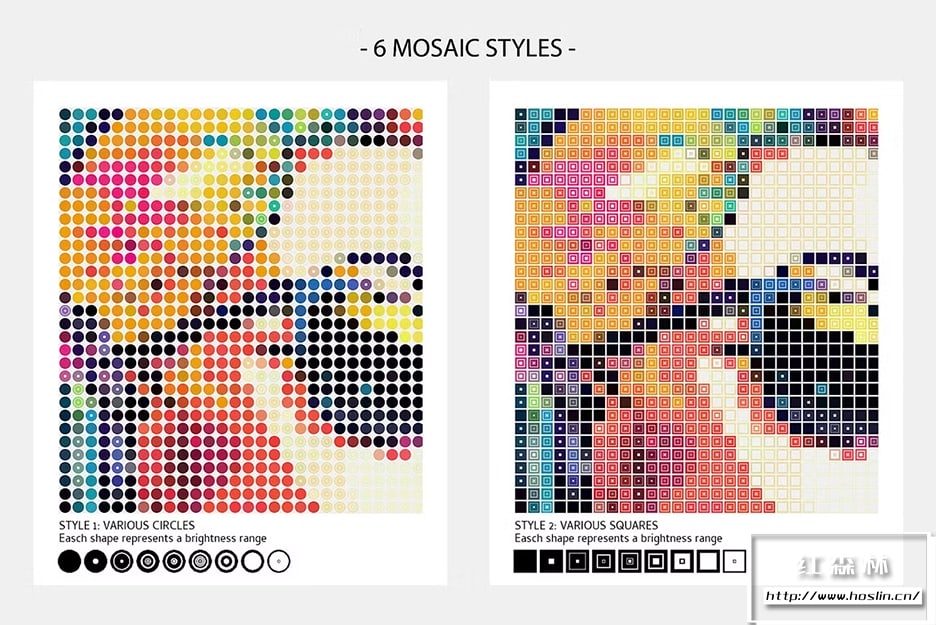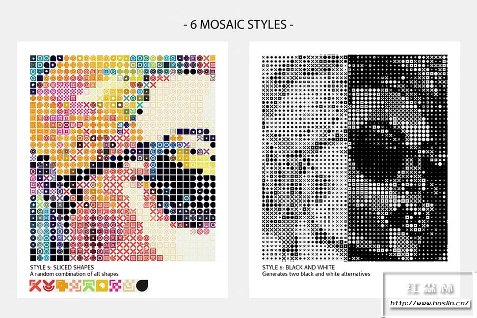 - 6 种不同的马赛克风格:从各种风格中进行选择,以符合您的创意构想,