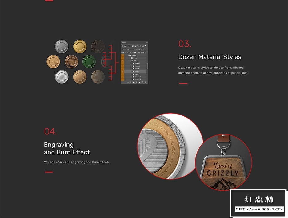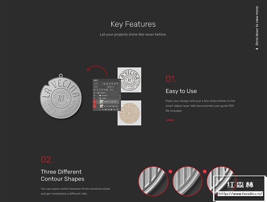 使用我们的钥匙扣模型生成器让您的徽标设计或品牌元素更加逼真和吸引人!通过智能对象层轻松编辑。所有文件和文件夹都井然有序。只需将您的设计添加到智能对象层,点击保存,即可完成。您可以轻松地在三种风格之间切换,获得完全不同的氛围。有十几种材料风格可供选择。混合并组合它们以实现数百种可能性。您一定会喜欢它!
