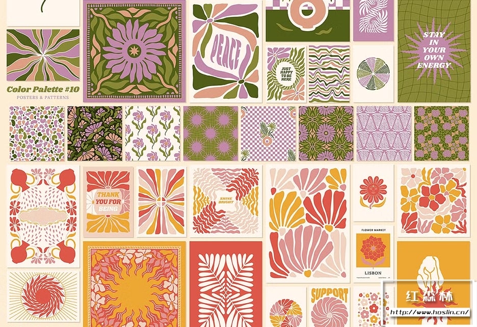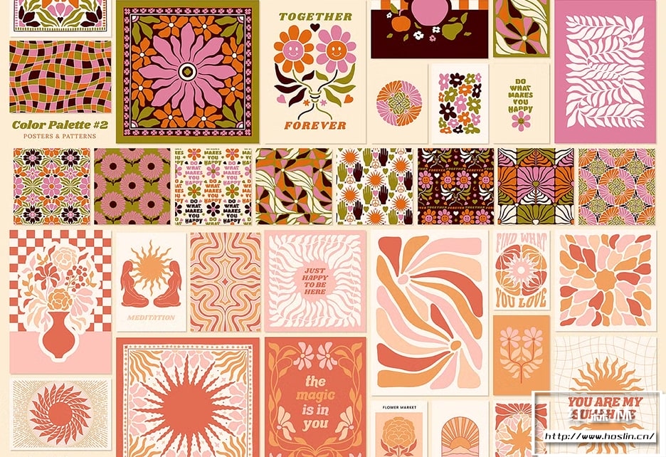 Groovy 海报和图案捆绑包非常适合婚礼邀请函、墙壁艺术印刷品、贺卡、礼品、徽标、海报、卡片、品牌、规划师、封面、社交媒体帐户、包装纸、墙纸、织物、剪贴簿、贴纸、网站、博客、邀请函等。