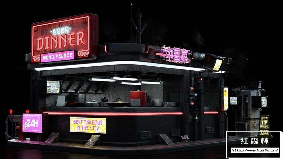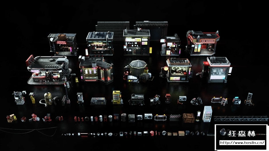 点亮夜空!用大量的售货亭、店面、食品店、独立机器、随机街道杂物、散热器、交通站、瓶子、平底锅、锅、罐子等等填充您的赛博朋克世界的街道!该套件的较大部件还具有详细的内部结构,可很好地适用于您的任何科幻或反乌托邦世界!