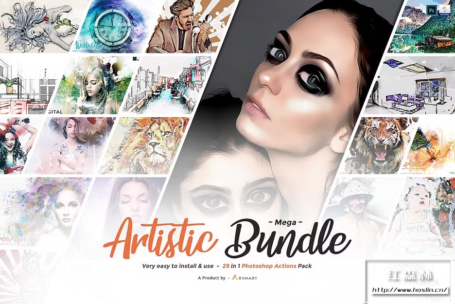 我要向您介绍的是超级艺术包,它有超过29 种独家动作,可帮助您为照片赋予独特效果。数字水彩、丙烯酸颜料、现代矢量艺术、数字化身创建器、油画矢量艺术以及更多令人惊叹的动作,您将在一个包中获得。