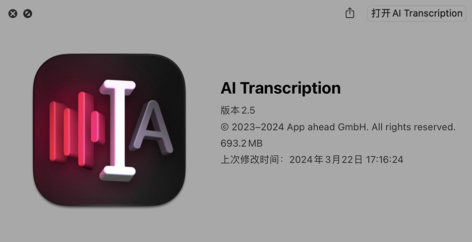 音频到文本转换器。将音频变成文字! AI 转录使用先进的语音识别功能,可在眨眼间完全自动、离线地转录您的音频和视频文件,并且结果高度准确。 AI Transcription 使用 OpenAI 的 Whisper 技术和 Apple 语音识别将语音(例如播客、演示、讲座或语音消息中的语音)转换为文本和字幕。