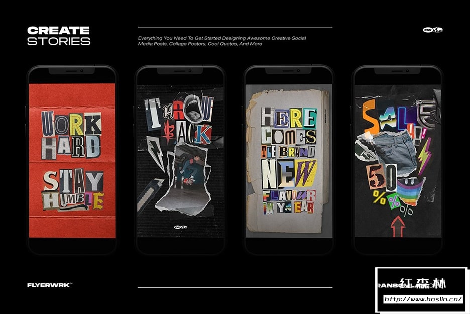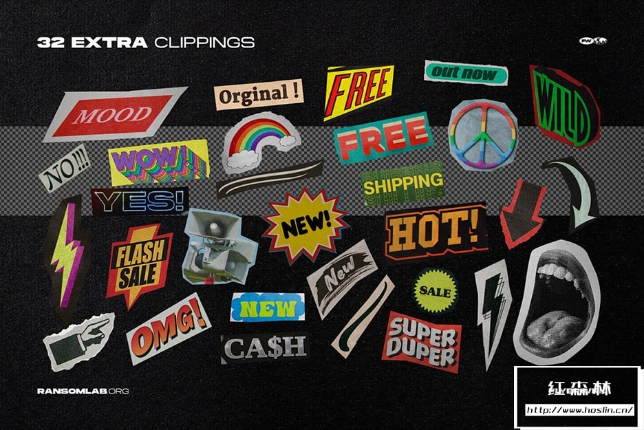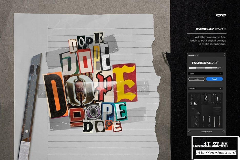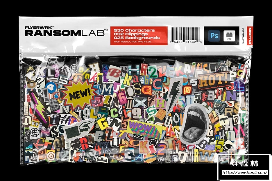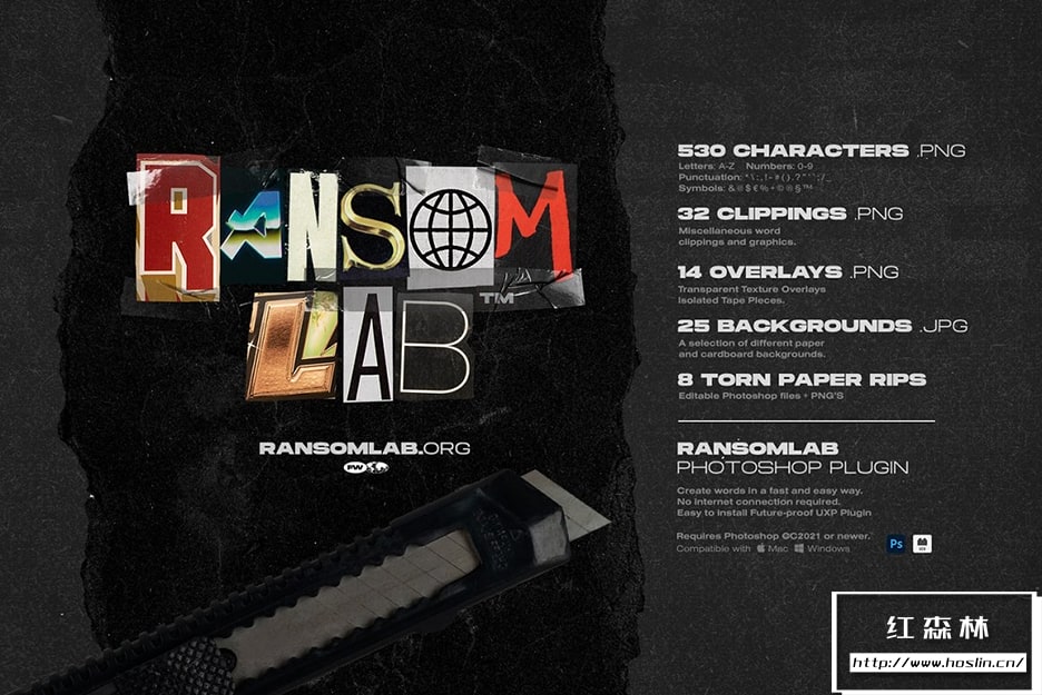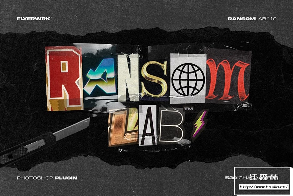 一体化套件包:有了 Photoshop 插件和 Ransomlab 套件,您便拥有了制作有趣拼贴画、复古设计、匿名笔记等所需的一切。