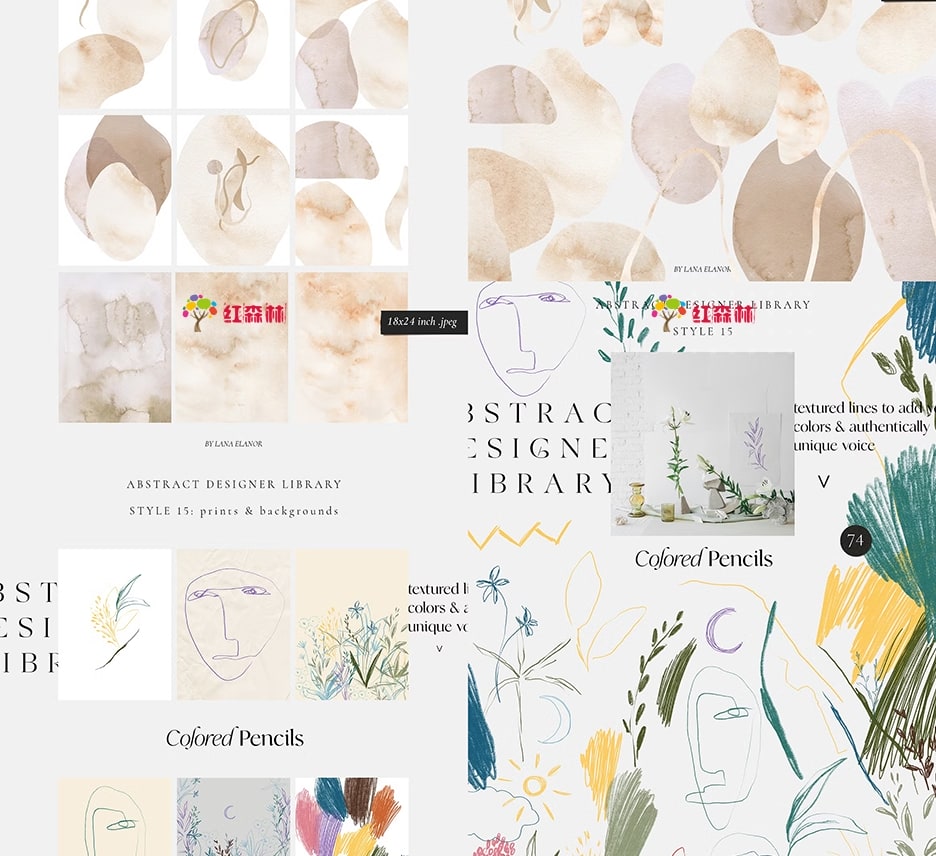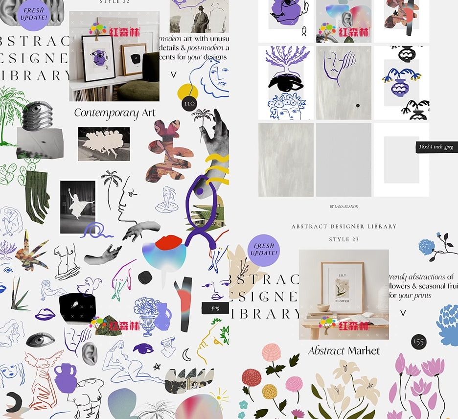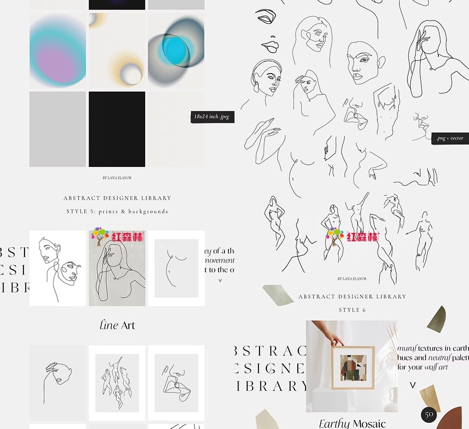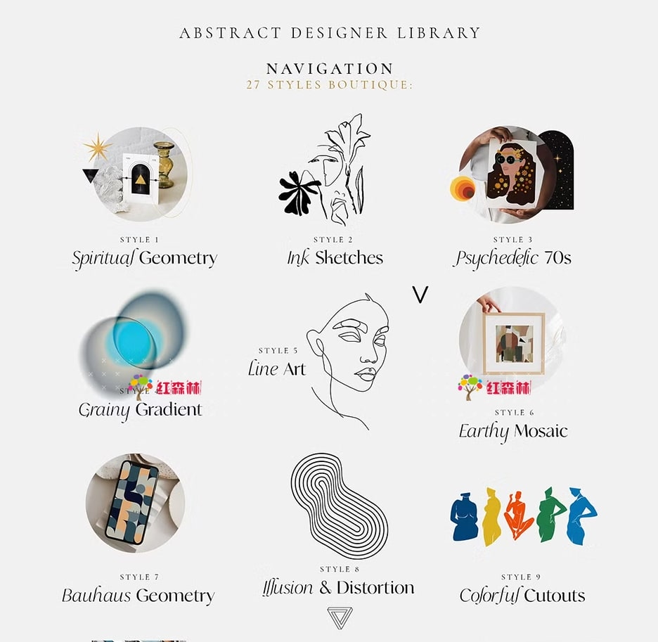 抽象设计师图书馆 – 27 种不同风格的精品店!您可能已经注意到,我非常喜欢尝试各种技术、媒介和对经典风格的诠释,以获得更现代、更时尚的感觉。因此,这个庞大的系列自然而然地诞生了,献给我对抽象和极简趋势的所有热爱和激情。