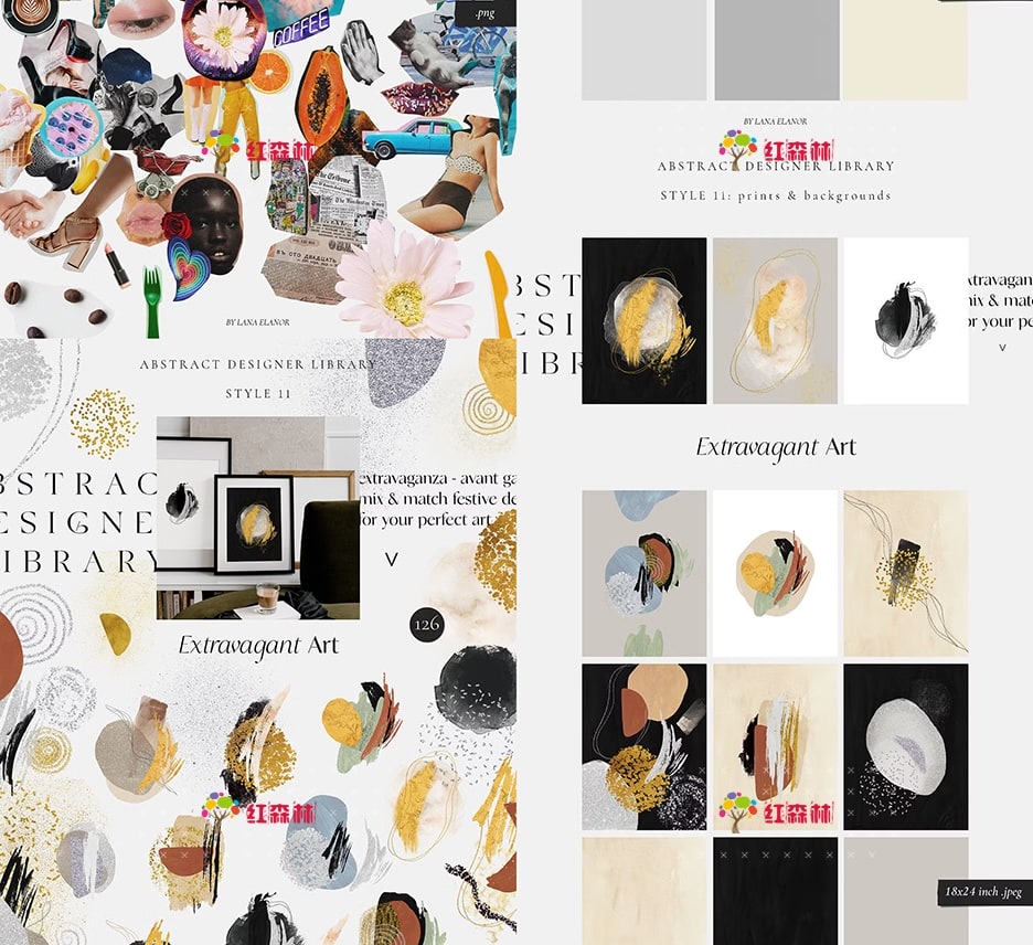 - 11 奢华艺术:126 个元素 (.png) + 12 个印刷品/背景 (.jpg)