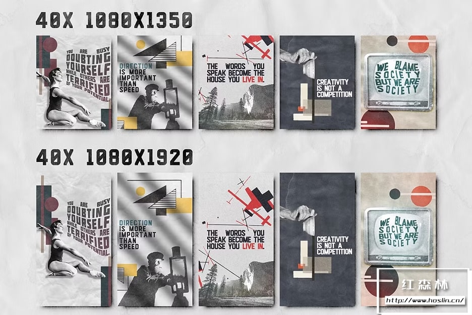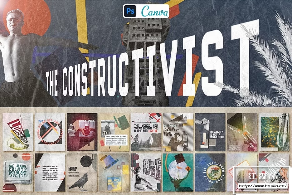 建构主义者 – 用简单的形状表达复杂性。30 + 30 个 Instagram 模板。在图形模板市场上 100% 独一无二,您找不到类似的东西。