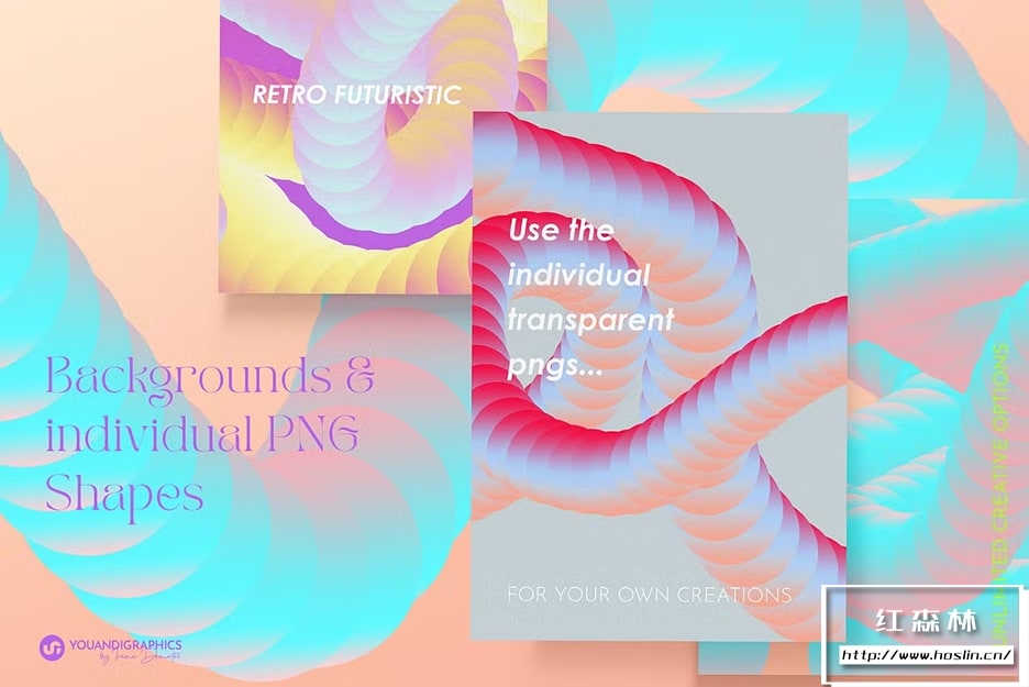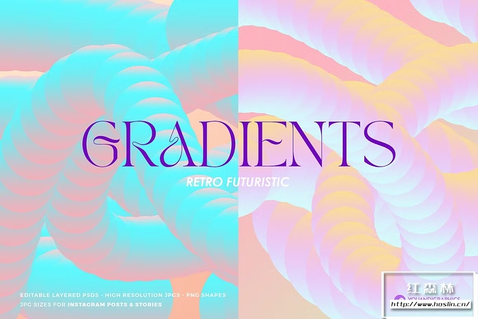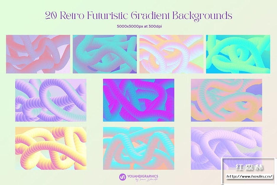 我很高兴向您介绍复古未来派渐变背景,这是一组带有抽象浮动元素的彩色背景。在此集合中,您将找到 20 个高分辨率背景,这些背景具有各种美丽的颜色组合,纹理精美,也可编辑(在 Adobe Photoshop 中)。我还包含了 60 个单独的 PNG 元素,因此您可以完全发挥创造力并提出自己独特的设计:)
