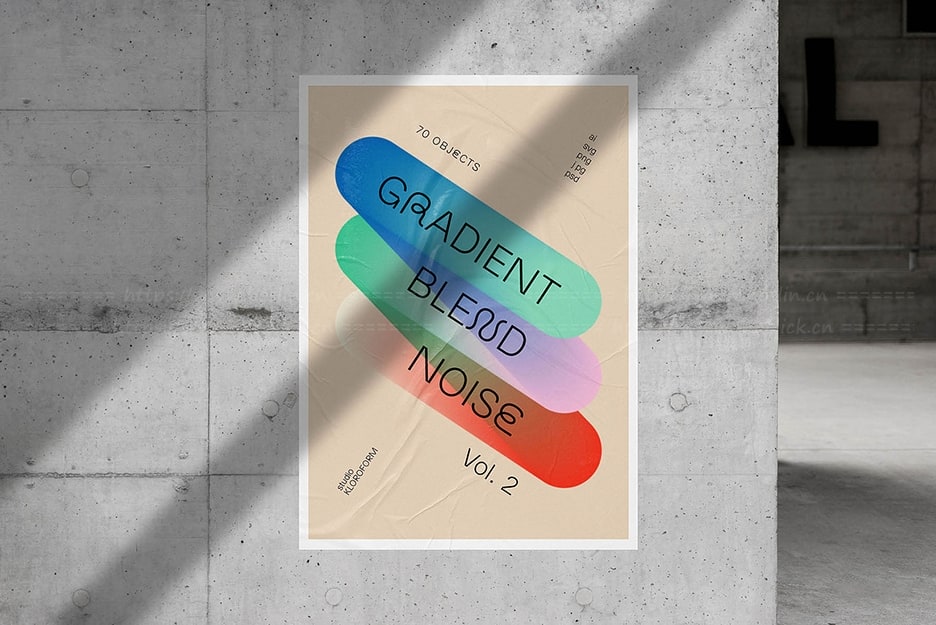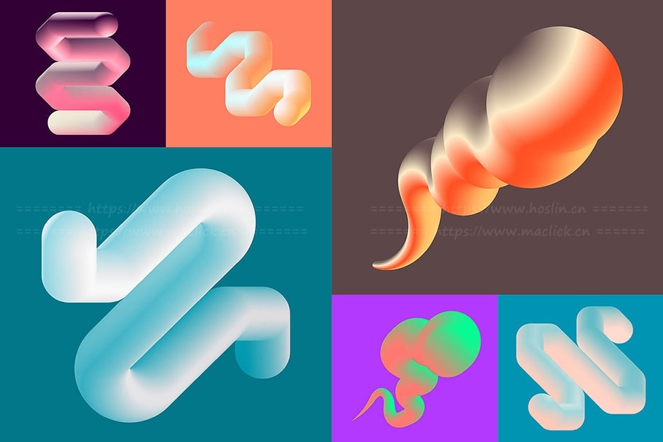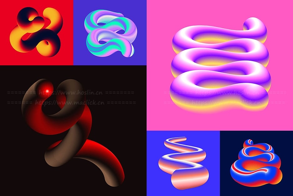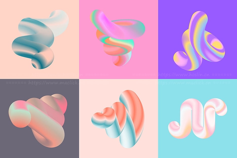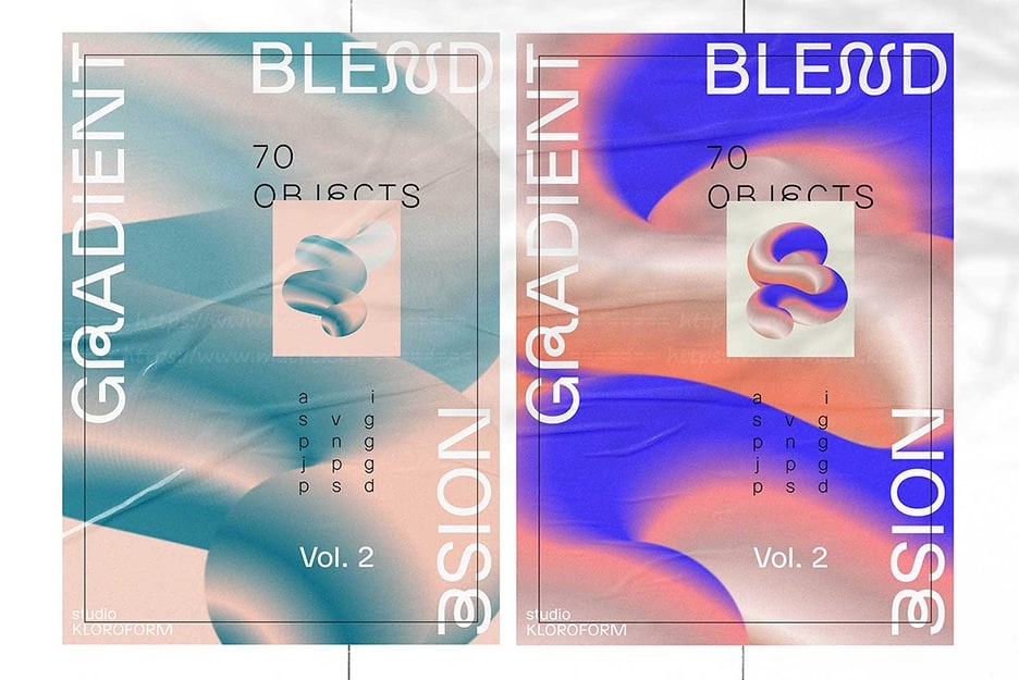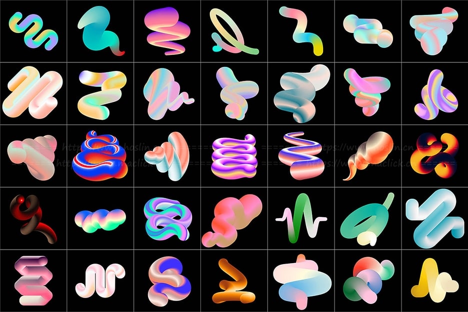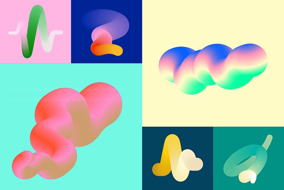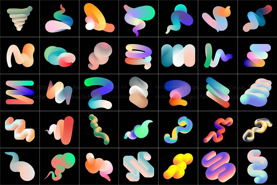 一套 70 个古怪、时髦和动态的设计元素,具有渐变混合效果