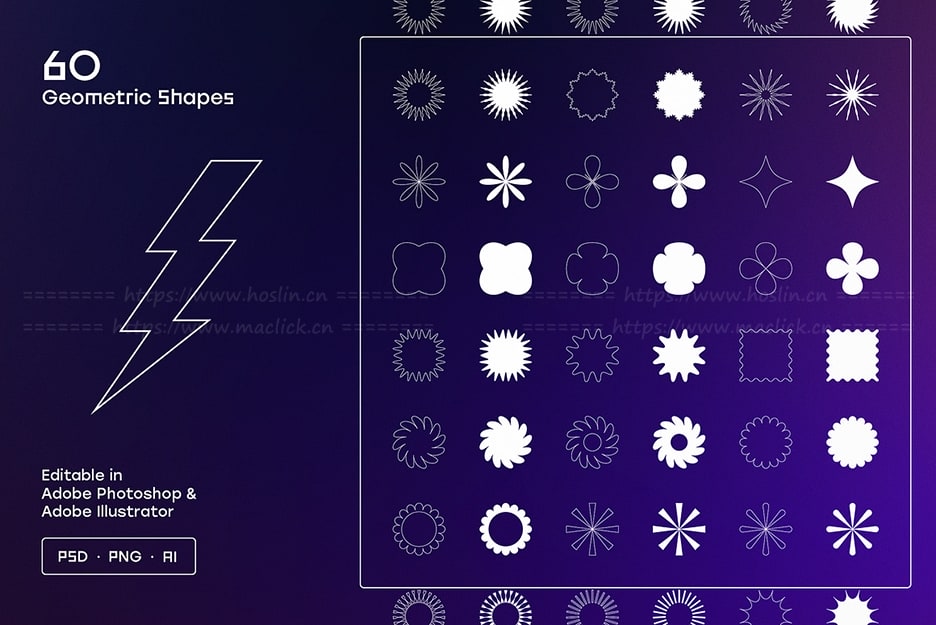 - 60 种几何形状(AI、PSD、PNG)
