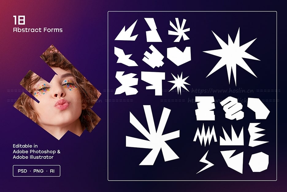 - 18 种抽象形式(Ai、PSD、PNG)