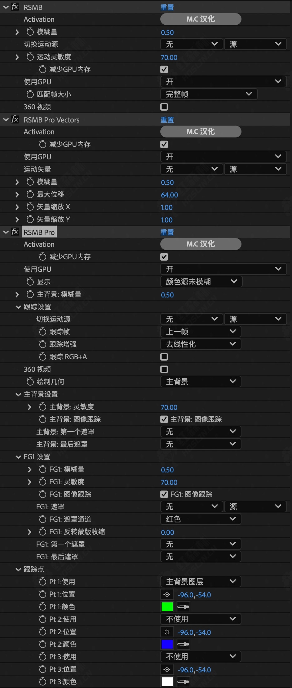 ReelSmart Motion Blur (RSMB) 是一款应用于After Effects和Premiere Pro的动态运动模糊插件,它可以自动添加更多自然的运动模糊效果。跟踪技术的核心在于ReelSmart运动模糊,无需手动设置。当然您可以添加你需要或尽可能多的模糊,甚至消除运动模糊。插件能自动在运动的效果中添加自然真实的运动模糊效果。支持GUP加速渲染;支持多帧渲染。RSMB的算法通过逐像素跟踪分析序列的两个连续帧(从第一帧到下一帧)的运动,并根据运动计算应用模糊。自动检测帧间物体运动的专有跟踪技术使得仅对整个视频的运动部分应用模糊效果成为可能,即使没有诸如遮蔽之类的处理也将成为可能。