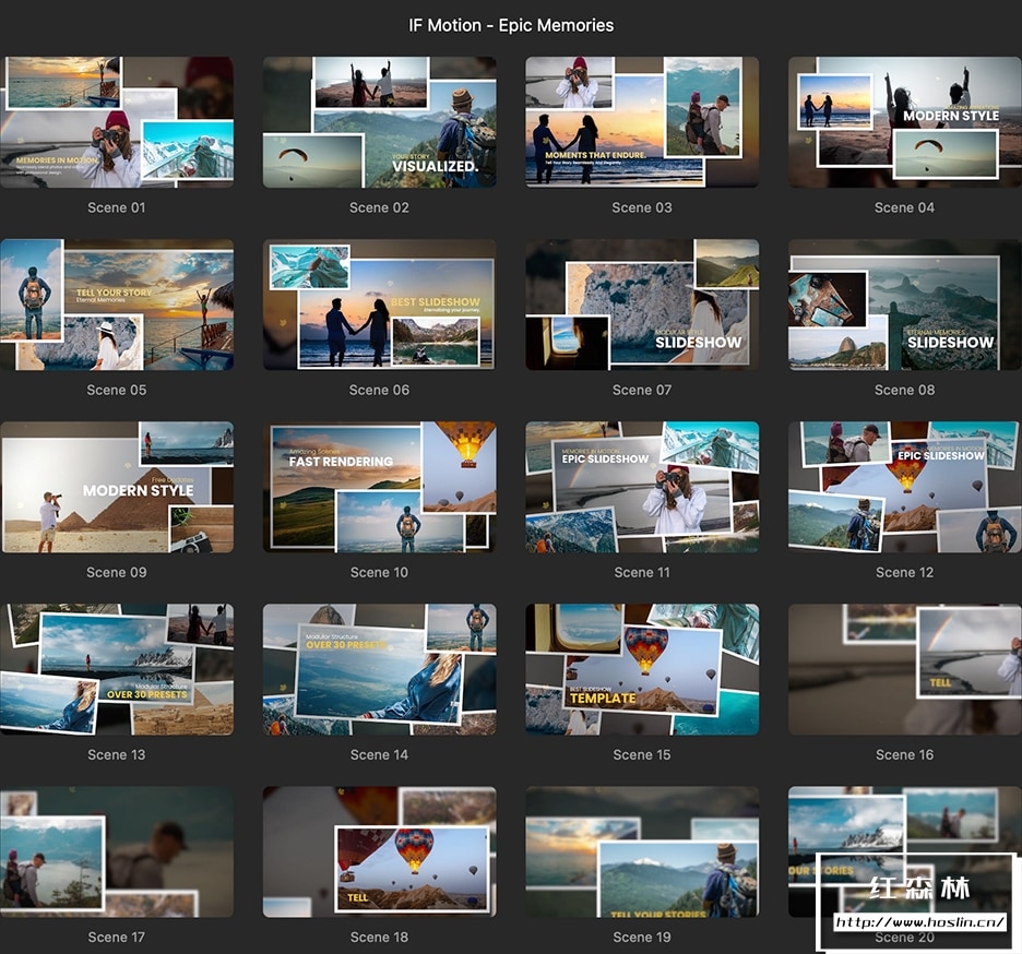 史诗般的回忆。使用 Epic Memories 轻松制作令人难忘的幻灯片,创建令人难忘的视觉故事。专业的设计和动画可制作出令人惊叹的幻灯片。从婚礼到假期,捕捉一生难忘的珍贵时刻。将您珍贵的回忆变成难忘的视觉之旅。这款专业设计和动画模板包提供 42 个模块化幻灯片场景、介绍、标题和特效工具,非常适合在几分钟内创建令人惊叹的视频。Epic Memories 非常适合婚礼、活动、假期甚至公司演示。