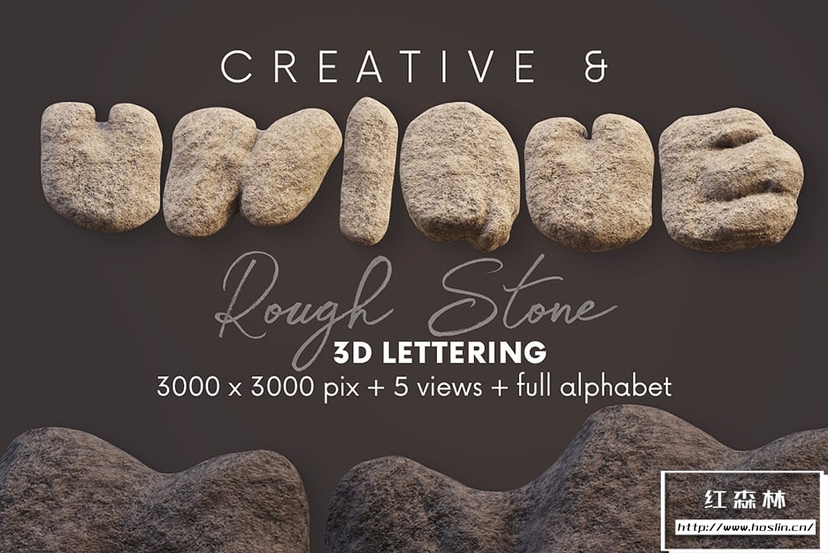 高分辨率逼真的 3D 粗糙石头或打火石风格字体渲染(3000×3000 像素 – 但字体尺寸略小)。非常适合您的标题、海报、广告 – 任何网络或印刷项目。