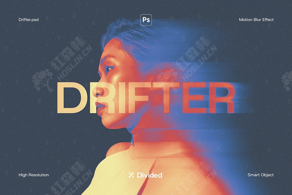 推出“Drifter”,轻松为您的图片添加迷人的运动模糊失真效果。Drifter 非常适合用于新闻照片、专辑封面和海报,它提供6 种动态颜色选项,可创造动态且引人入胜的视觉体验。只需将您的图片放入我们的 Photoshop 文件智能对象中,即可让我们的效果生效。