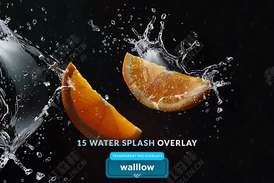 15 水溅 PNG 剪贴画,水溅透明 PNG 照片叠加,适用于产品摄影道具和照片背景的 photoshop 叠加效果。这些覆盖层与流行的照片编辑软件兼容,例如 Photoshop、Photoshop Elements、GIMP、Photopea、Canva 等,该系列确保业余爱好者和经验丰富的专业人士都能轻松使用。