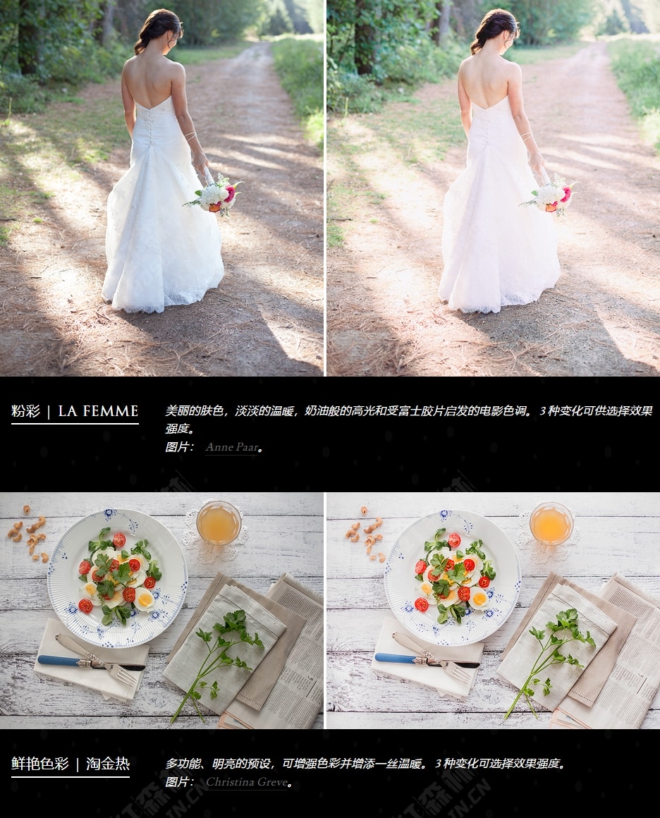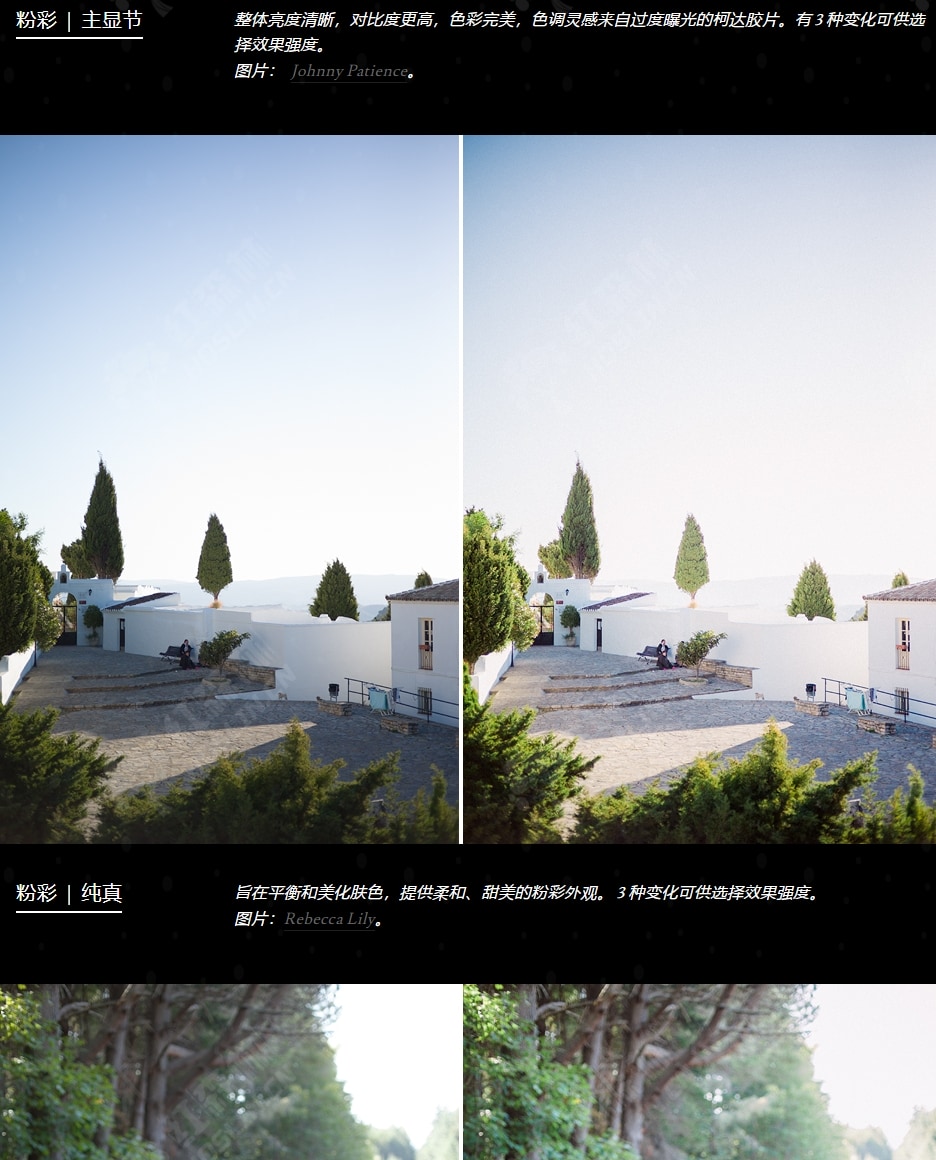 Pro Set III for Lightroom 4/5/6/CC、Lightroom Mobile 和 ACR 7/8/9/10/11 专为专业摄影师和摄影爱好者而设计,他们使用数码或胶片和数码混合拍摄,并且喜欢永恒、真实的色调。Pro Set III 借鉴了 Rebecca 多年的经验和对胶片拍摄的热爱,创造了一种独特的外观,探索了如果仍在生产新胶片乳剂可能会发生什么。Pro Set III 提供专业的色彩分级产品,只需单击一下即可应用于 RAW 和 JPG 文件,使摄影师能够实现一致性并节省大量后期制作时间。