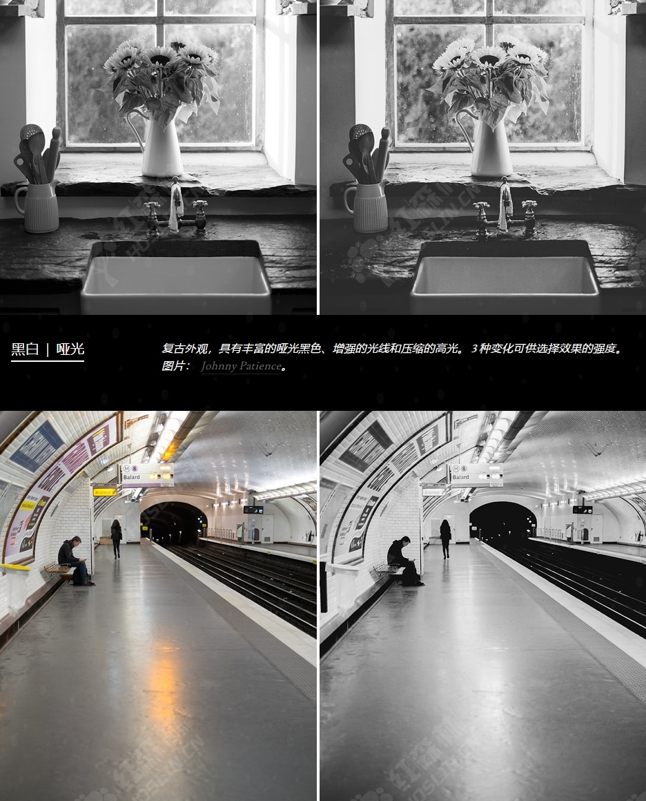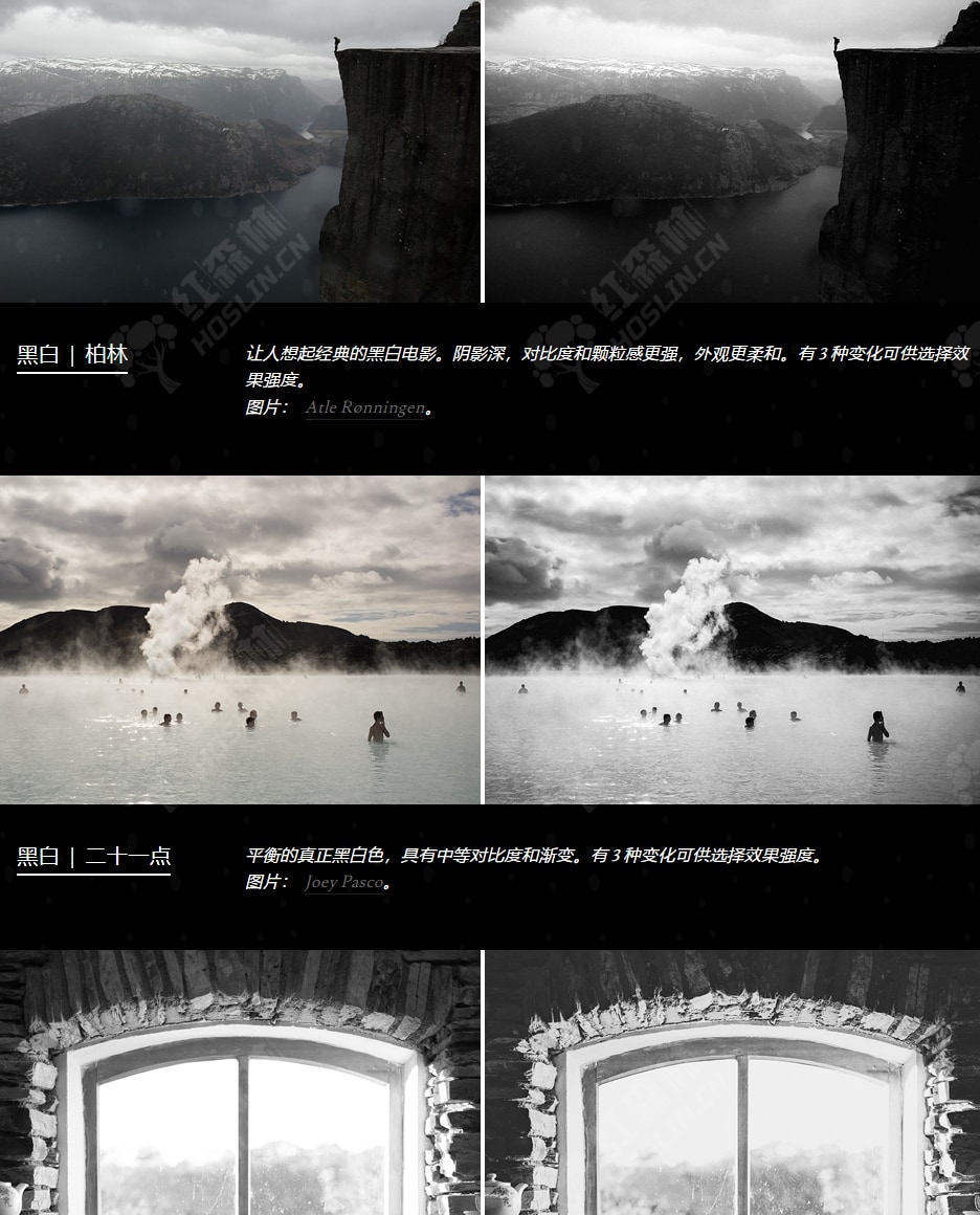 - 电影风格的演绎——精致的高光和阴影处理、精心保存的细节和平衡的对比度。
