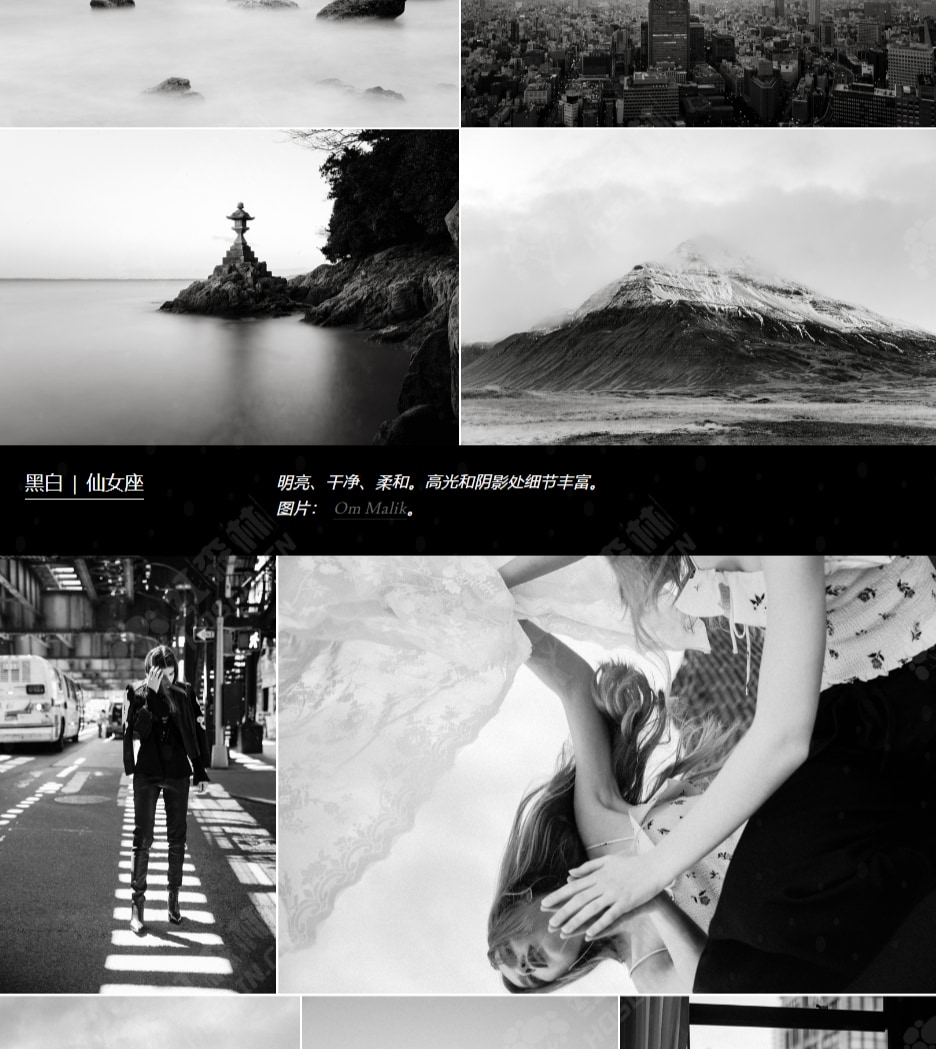 - 令人兴奋的全新黑白色系列,从干净、细腻、明亮到大胆、黑暗、颗粒感。