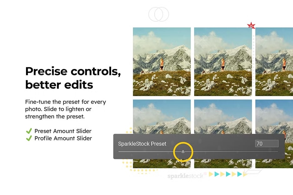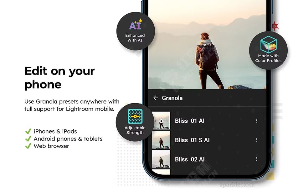 - SparkleStock Lightroom 预设与 Lightroom CC 2023+、Lightroom Classic CC 2023+、Lightroom Mobile、Photoshop CC 2023+、Adobe Camera Raw v15+ 兼容