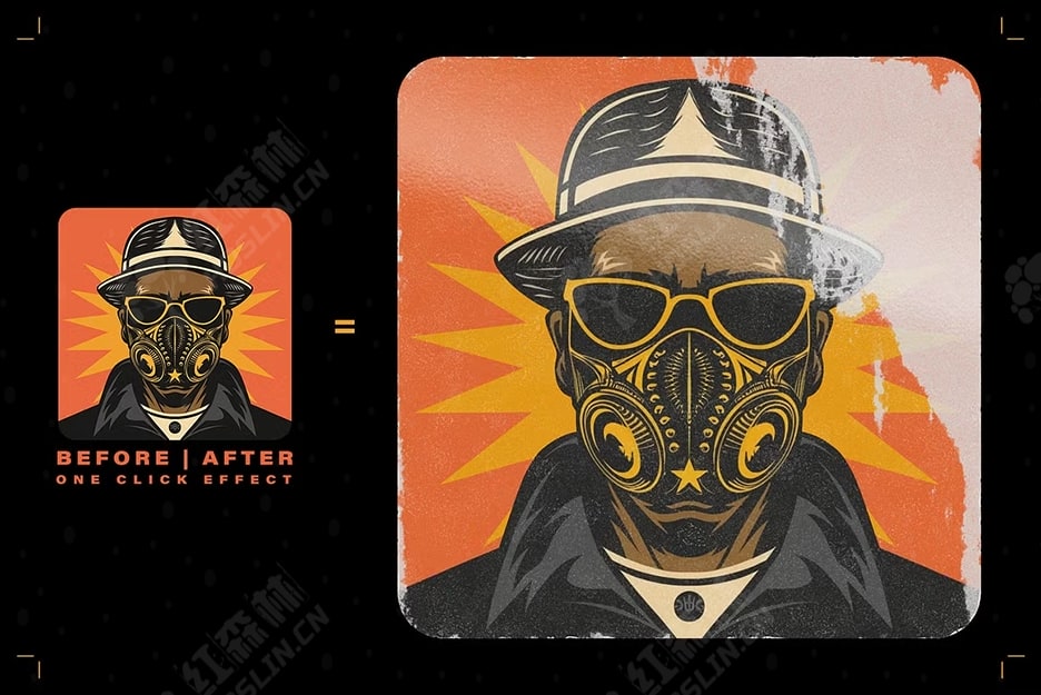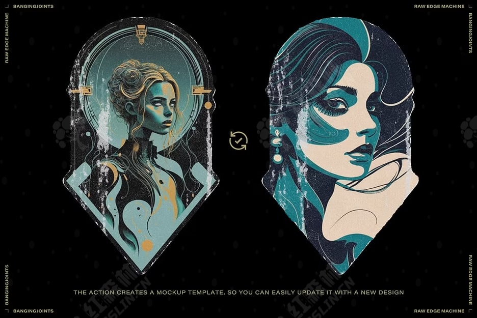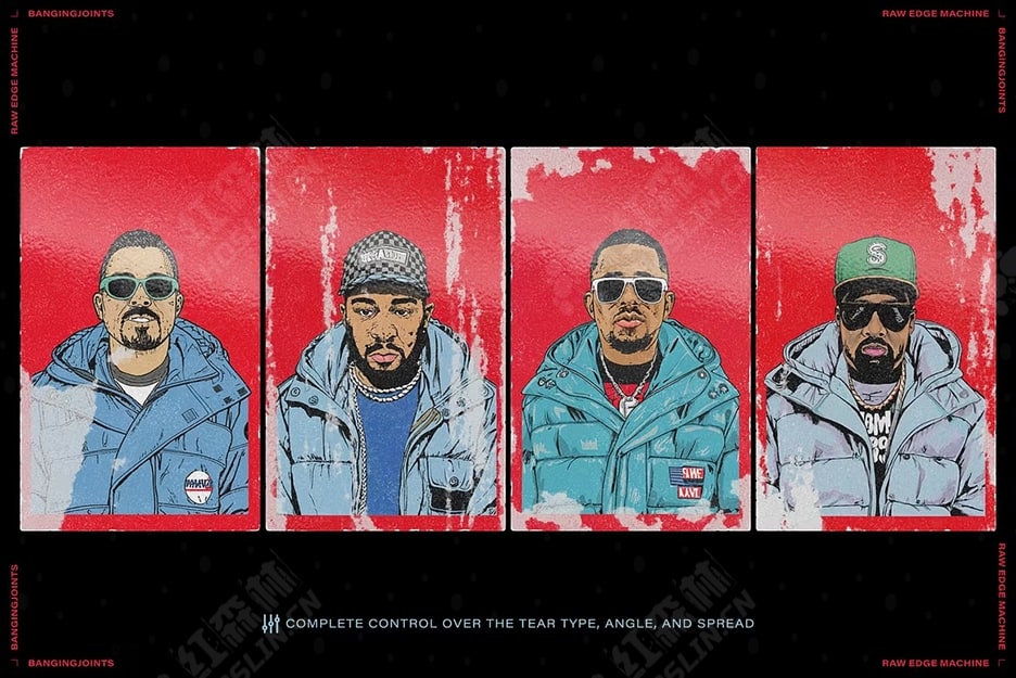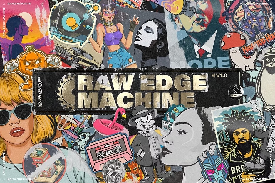 Raw Edge Photoshop Action 可生成撕破的贴纸和海报外观,让您可以为您的设计增添街头文化气息。这款强大的处理工具可创建粗糙磨损的纹理和覆盖层,为您提供无限选择,让您可以逼真地以数字方式刮擦和破坏您的图像和资产。