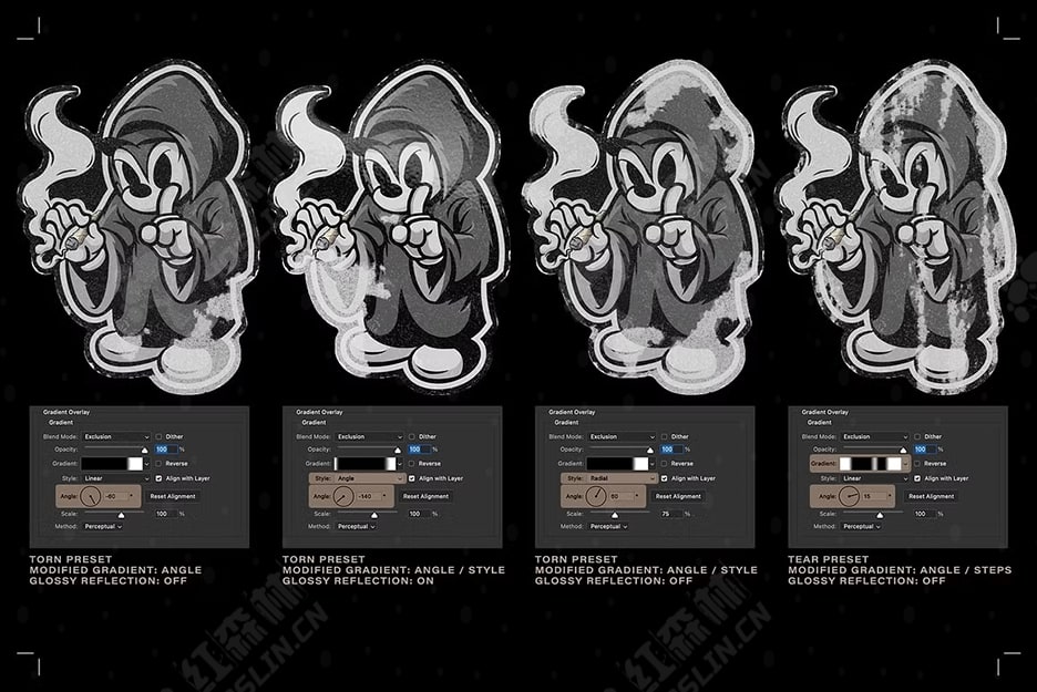 - 您没看错:渲染无限的自定义效果,选择您最喜欢的模板,并通过智能对象替换您的艺术品。