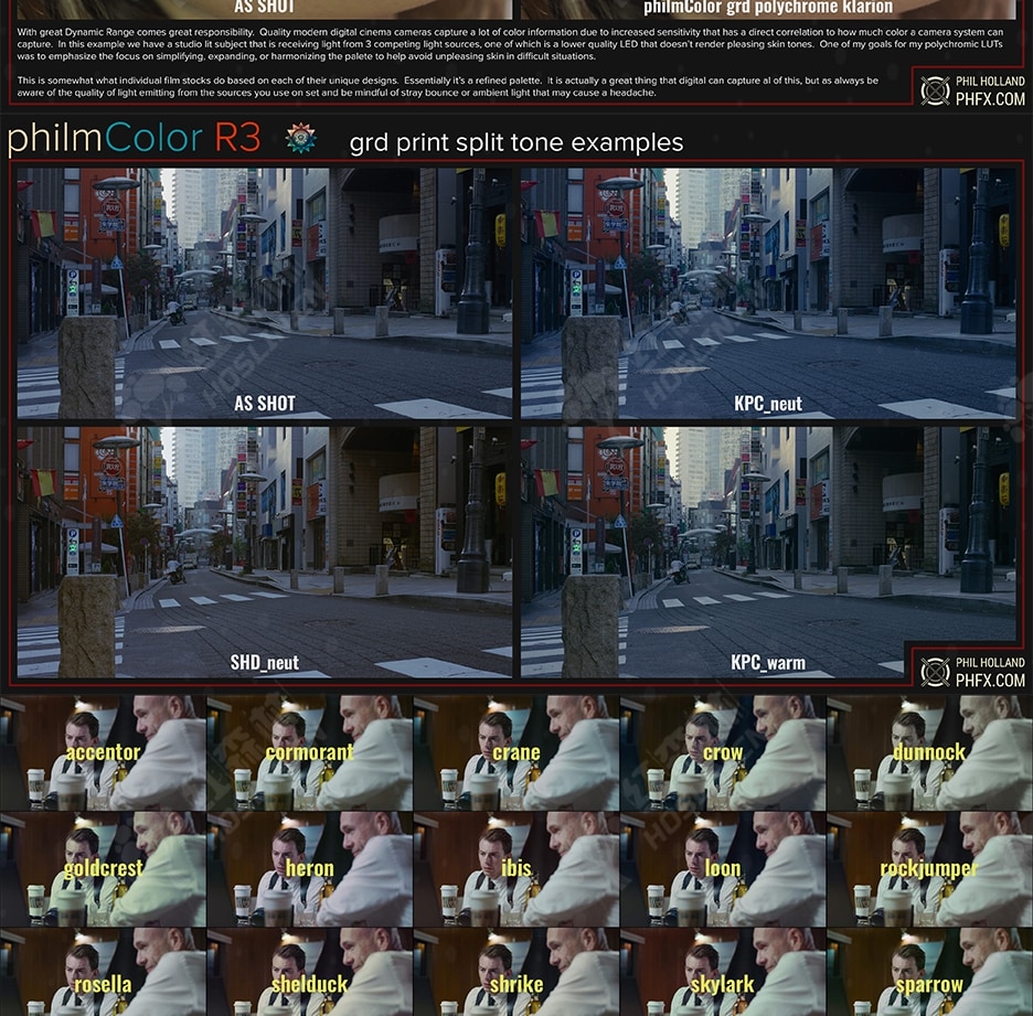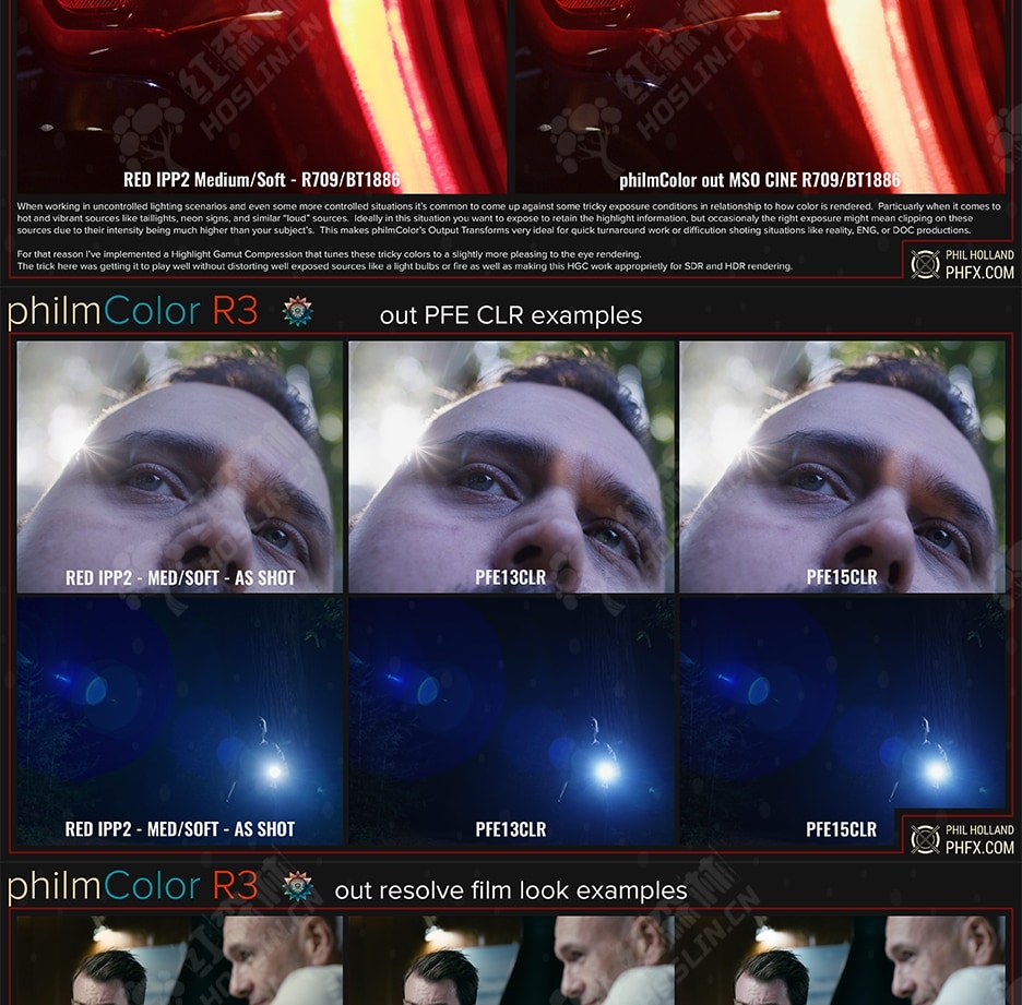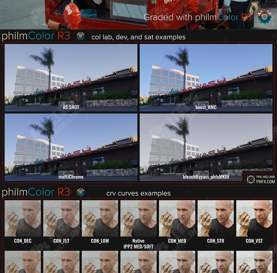 philm Color是一个基于 RED IPP2 色彩工作流程构建的 LUT 扩展集合。LUT 的范围从创意外观到后期调色师的实用工具。自 2017 年上次发布以来,这是一段旅程。成千上万的作品在片场、后期使用了这些 LUT,我很高兴看到在片场加载的 LUT 的 BTS 截图。philmColor 的成功让我投入了大量时间在人们的要求、项目外观等方面。个人、工作室和制作开始进行大量测试,并为我自己的项目创建更多外观。这甚至带来了一个机会,可以创建 RED 新款 DSMC3 相机中的一小部分 LUT。但我向你保证,这只是我在 PCR3 中包含的盛宴的一小部分。