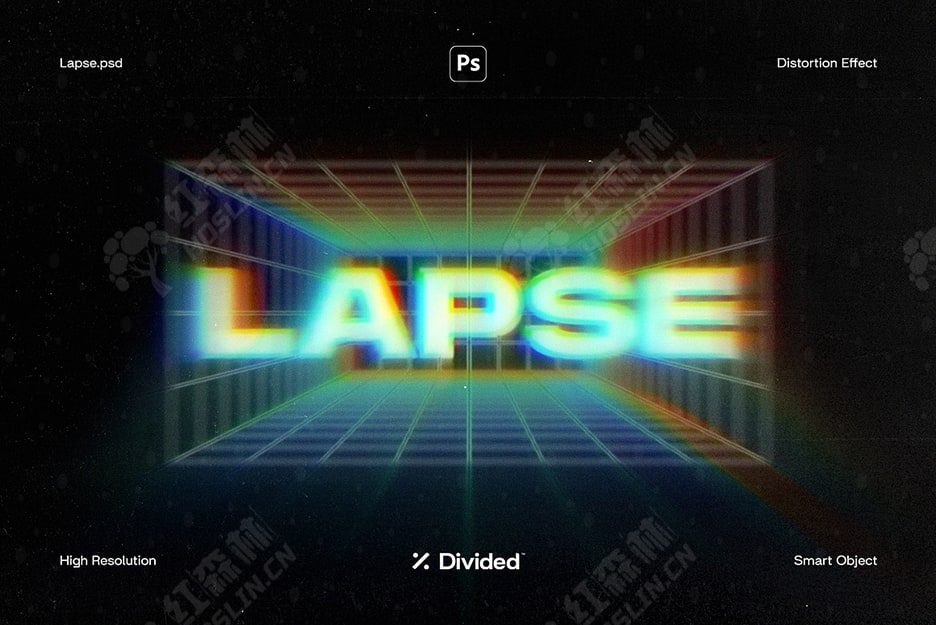使用“Lapse”创建真实的色差效果,这是我们的 Photoshop 效果,非常适合文本扭曲。只需将您的徽标或字体放入智能对象中,然后让我们的预定义自定义效果完成剩下的工作。