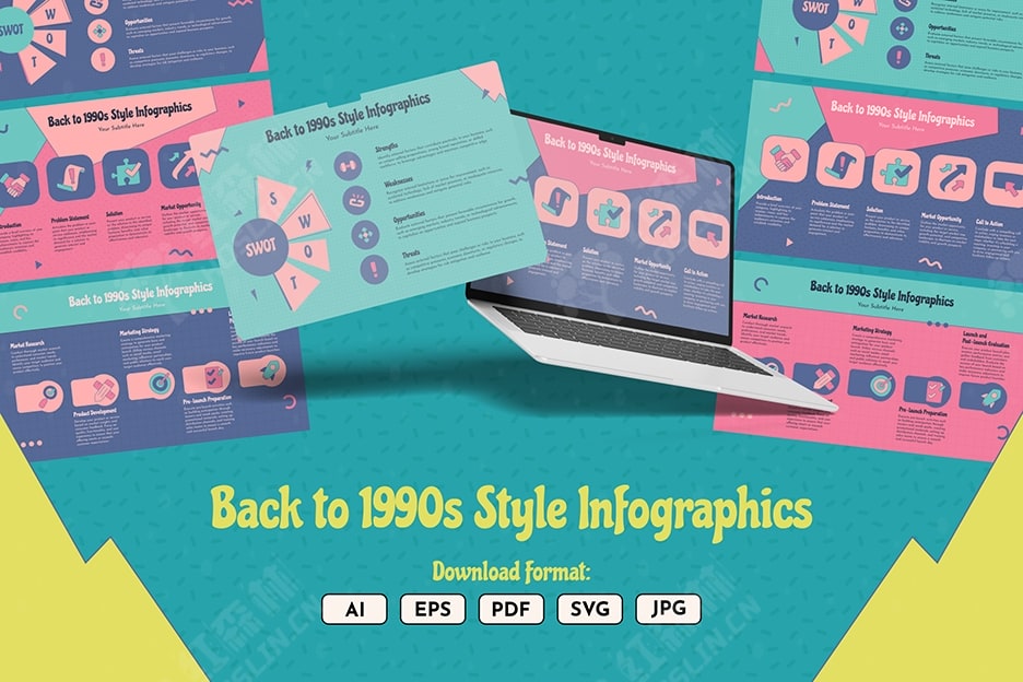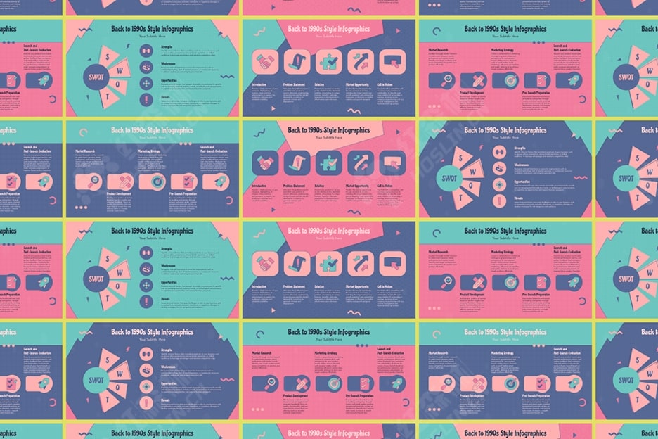 通过我们时尚复古的信息图表重温 90 年代的氛围。非常适合为您的设计增添怀旧气息。
