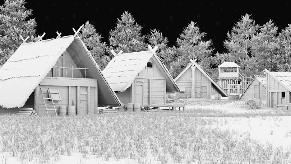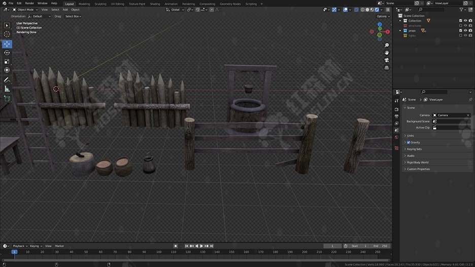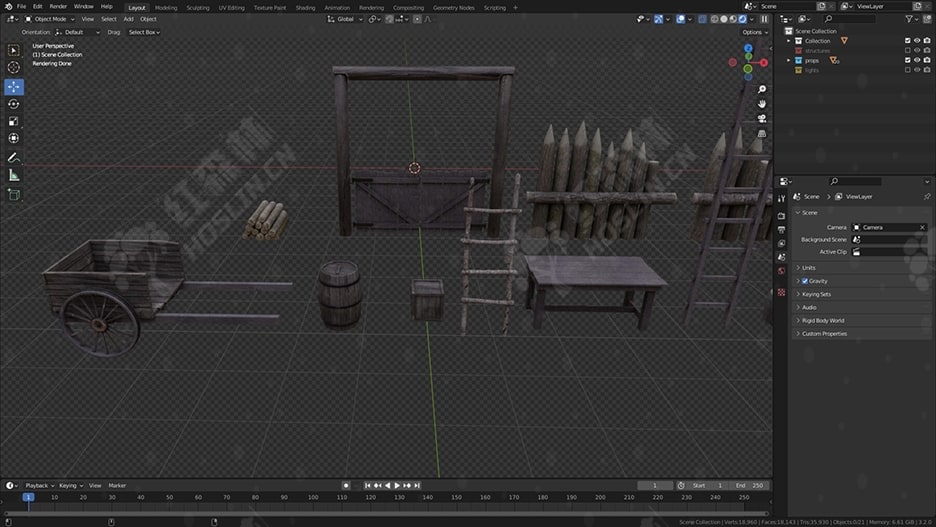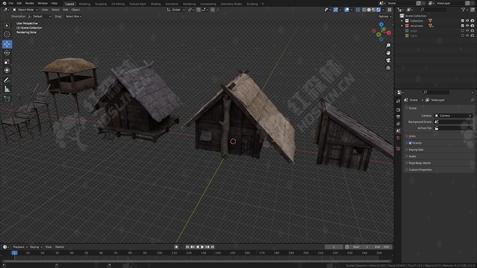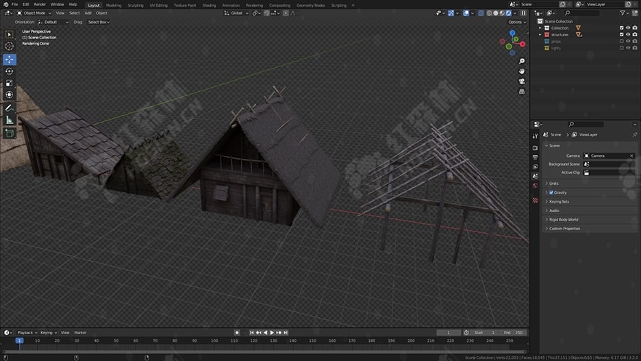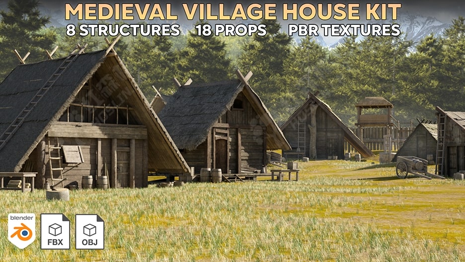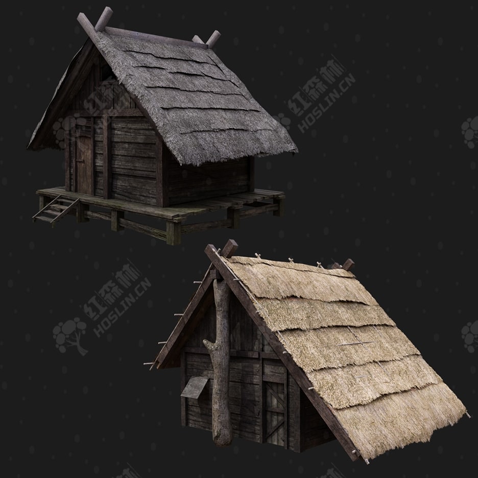 Medieval Village Kitbash 包含木制村庄结构共36200个面片,26个模型结构及道具。