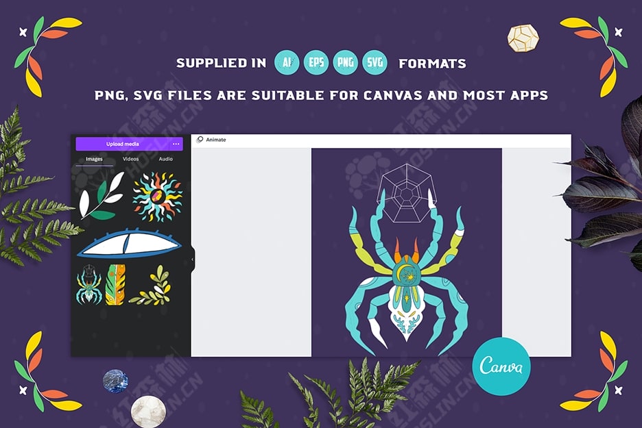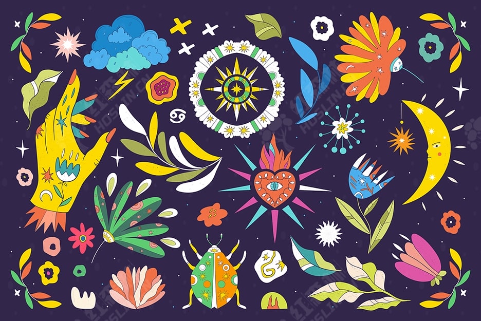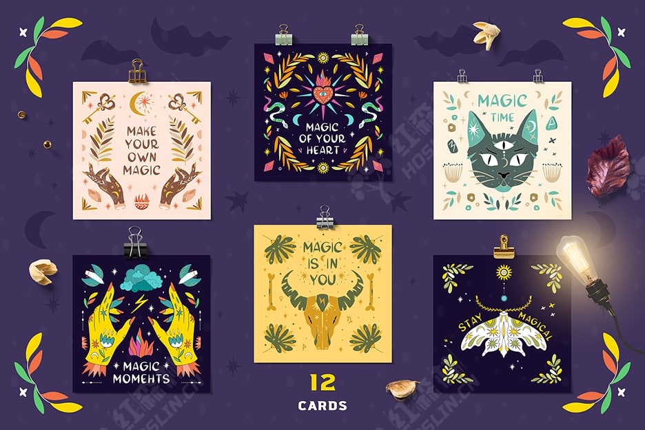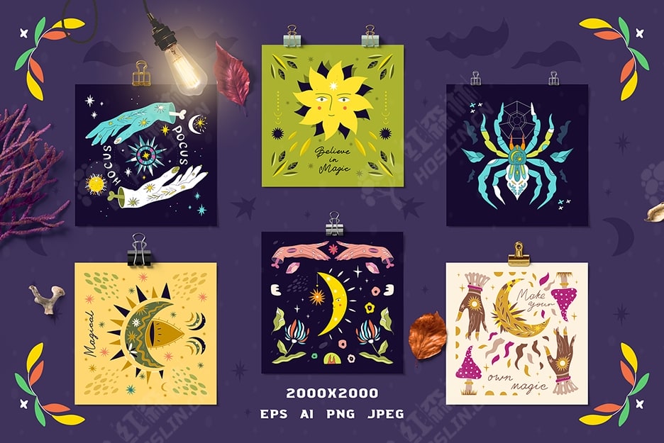 所有元素都是手绘的,并以相同的风格数字化,并且彼此完美结合。使用产品中的现成模板或为您的业务、纺织品、包装纸、贺卡、博客设计和其他东西创建自己的设计。为您的业务或室内设计创建品牌。