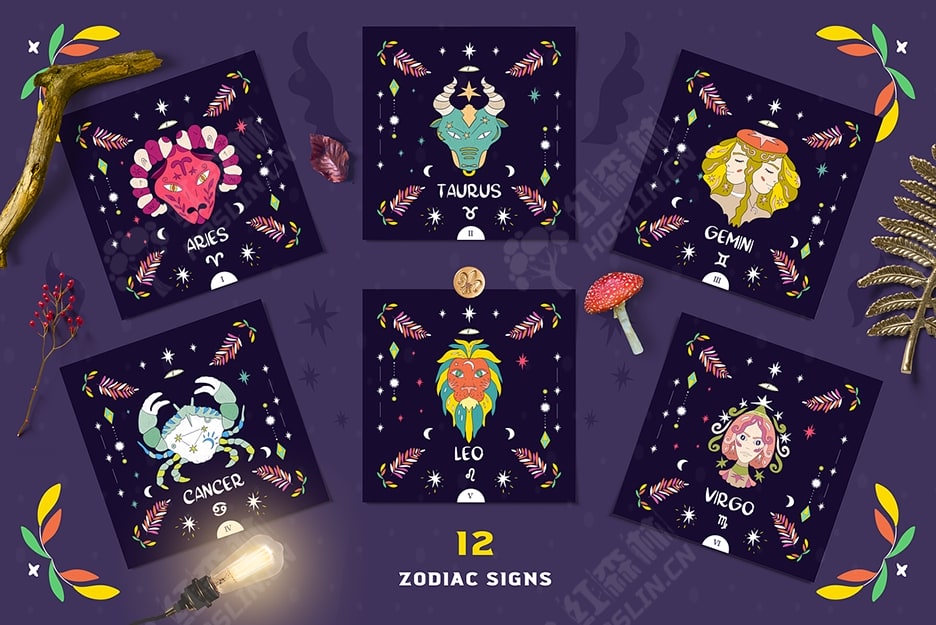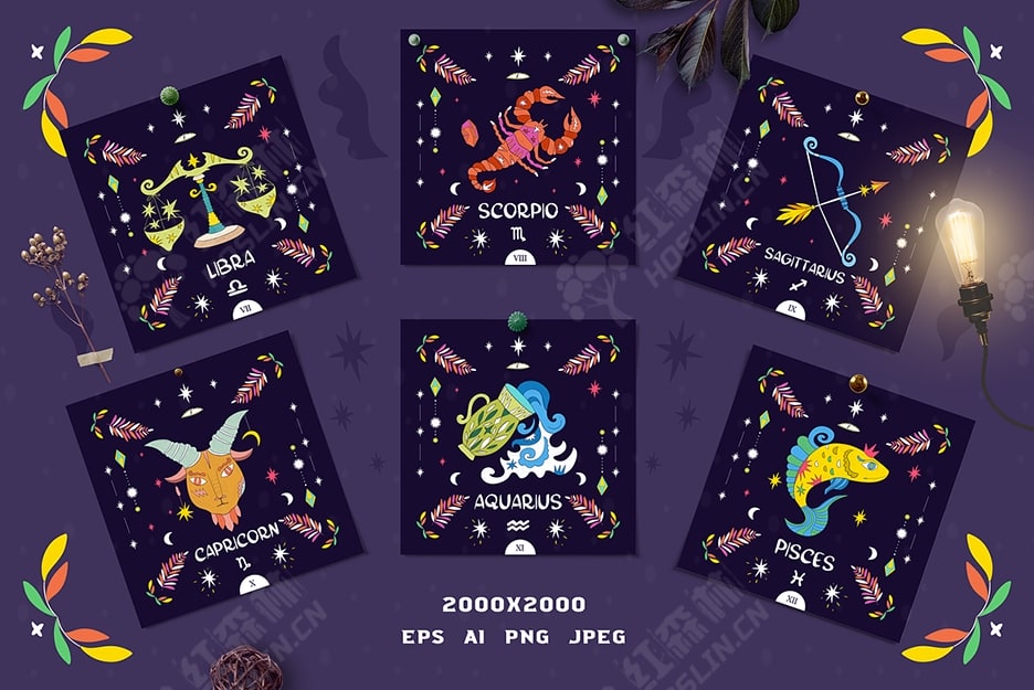 - 12 星座卡片 + 星座圈 AI / EPS / PNG / JPEG