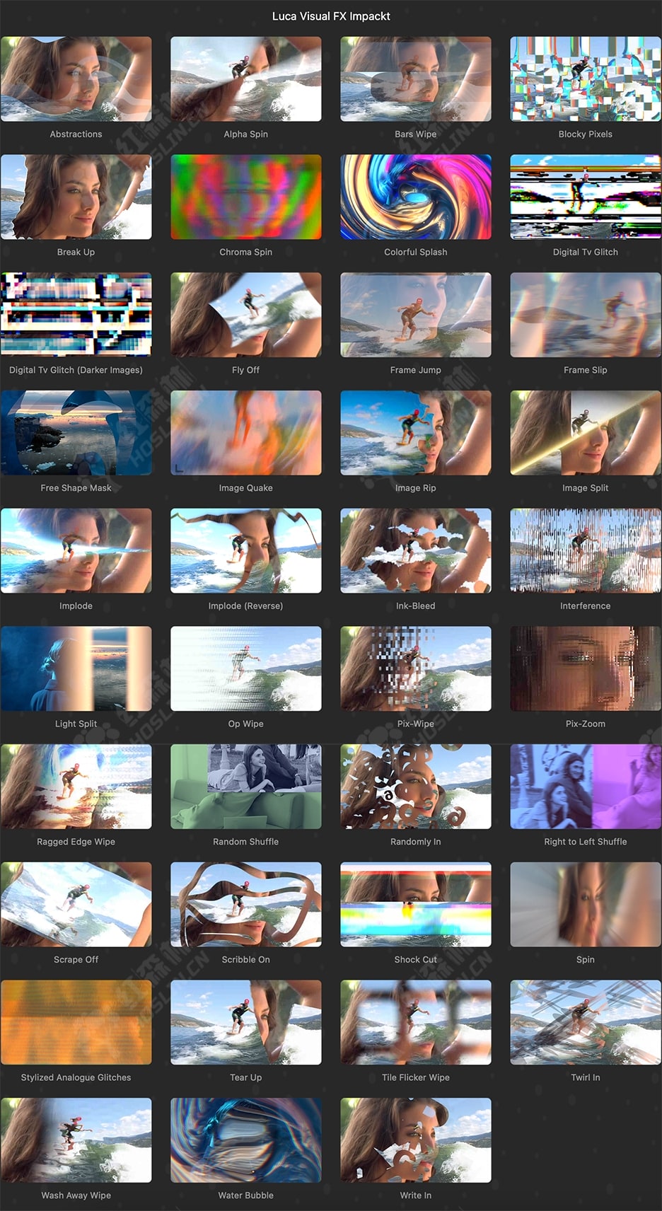 创建数字和模拟故障、戏剧性擦除、可定制的旋转、撕裂、渗色、分裂、棱镜特效等等……一包视觉特效,一个解决方案的世界!Impackt 2.0 是 Final Cut Pro Transitions 的一站式商店,为各种电影/视频制作提供多种风格。作为视频编辑,我们经常处理各种各样的项目。每一个都有自己的风格、情绪、节奏和能量。Impackt 2.0 带有 43 种不同风格的转场和大量自定义参数,允许用户根据喜好修改转场的每个方面。 Impackt 2.0 中的新功能 – 10 个新转场,数量从 33 个增加到 43 个。 – 重新设计了许多现有的转场以改善外观和效率。 – 在需要时添加横幅和部分。使用庞大的转场效果库制作有影响力的视频。