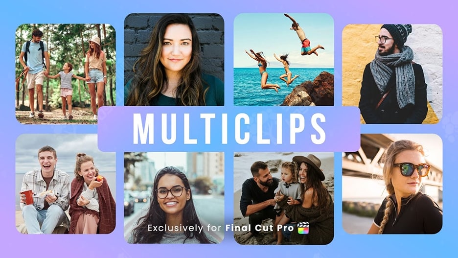发现 Multiclips for Final Cut Pro 的强大功能!使用所有基本工具简化多剪辑编辑 大量选项,集成所有必要功能,简化在单个场景中同时编辑多个剪辑。使用动态网格、媒体墙等改变您的项目。使用 Multiclips,您可以使用标题模板轻松地将媒体加载到拖放区中,或使用效果浏览器模板直接在时间线上工作。享受预制的视频通话和媒体墙示例以快速启动您的项目。使用直观的屏幕控件自定义布局、调整网格设置、切换轮廓等。使用阴影、背景控件和各种合成工具增强您的视频。Multiclips 提供额外的标题、动画图标和背景叠加和晕影等效果来提升您的内容。