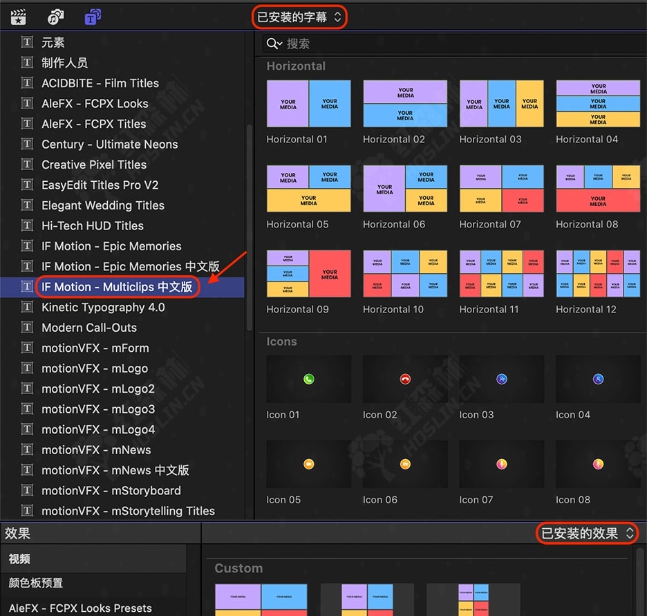 插件升级到2.0版本,新增 90 个元素,2.0现在有181个动画预设:IF Motion – Multiclips 2.0 汉化版