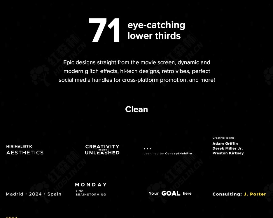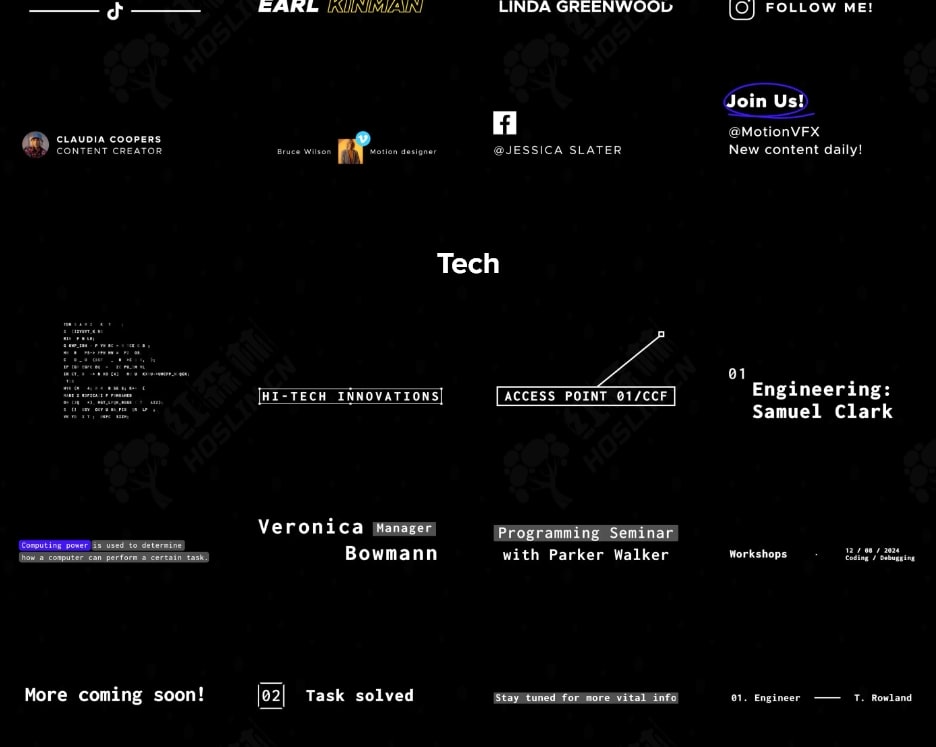 推出 mLowers Universal – 一套包含 70 种多样、易于使用的字幕条预设包,可与您的任何项目完美融合! ? 以任何风格提供背景和信息!视频编辑器以不同的形式涵盖各种主题,每个项目可能需要不同的东西!这就是我们的通用字幕条动画系列的用武之地!mLower Universal 是一套包含 70 种动画、多样、易于使用的字幕条标题预设的包,可与您的任何项目完美融合!mLowers Universal 多功能性来自于各种强烈而独特的风格,包括直接来自电影屏幕的史诗设计、动态和现代的故障效果、高科技设计、复古氛围和完美的社交媒体手柄,用于跨平台推广!mLowers Universal 包含6种类别:电影感、复古、简洁、科技、毛刺、社交媒体71种效果。可以自定义出入动画、位置、透明度、字体、颜色等多种参数。插件还提供了详细的视频教程,带领你深入了解多功能时尚排版的世界,让您的编辑更易于理解和信息丰富。