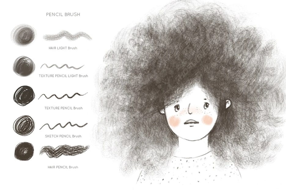 内容包括: 5 支铅笔刷,19 支纹理刷,6 支印章。祝您绘画轻松愉快!