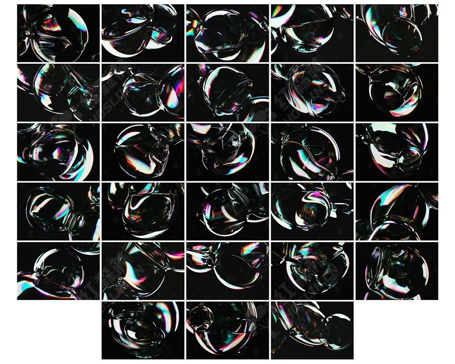 关于产品:Chromatic Bubbles Backgrounds & Overlays 黑色背景上彩虹色气泡。