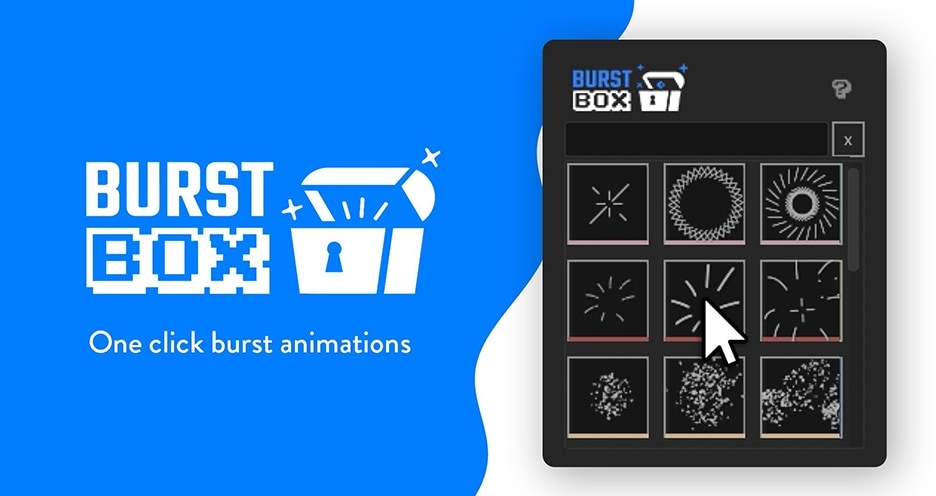 只需单击一下即可在 After Effects 中 创建爆发和弹出动画!启航前往 BurstBox,这是 Adobe After Effects 的冒险脚本,可制作出像从宝箱中淘出的宝物一样爆裂的动画!使用 BurstBox,您可以为徽标、标题和动态图形添加一丝魔力。从宝库中选择任何爆发动画,只需单击一下即可观看其栩栩如生。哇,再简单不过了!
