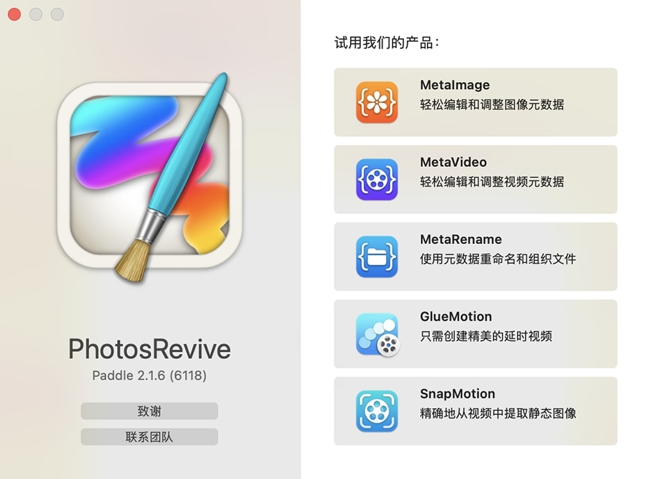 PhotosRevive 是一款Mac平台上的照片色彩和图像编辑工具。PhotosRevive最新版采用了先进的人工智能技术,能够帮助用户为那些老旧的黑白照片着色。通过PhotosRevive软件用户只需扫描或导入你的照片,只要一键便能够为照片上色,简单易用。