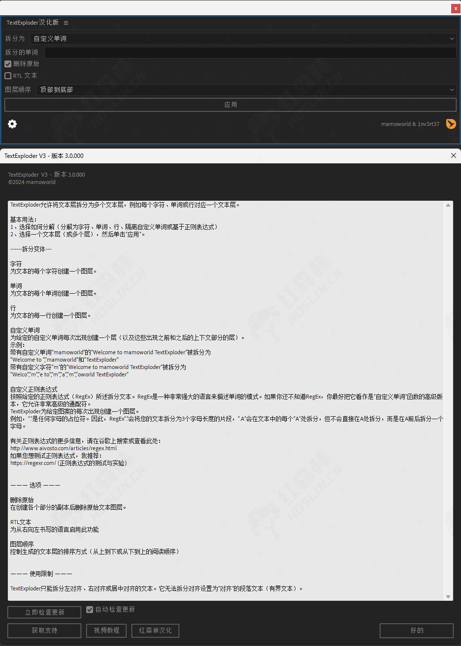 V3 中的新功能:每个字符的文本样式。Text Exploder 终于支持多种颜色、字体或其他文本样式的文本。此功能需要 Ae 24.3 或更高版本。