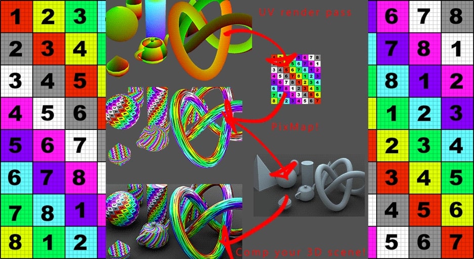 PixMap 将 UV 纹理映射直接带入 After Effects!通过将任何图层或视频映射到 UV 纹理通道上,可以快速迭代重新纹理,从而改善您的工作流程。无需为了一次纹理更改而重新渲染昂贵的 3D 场景。现在,您可以在 After Effects 中渲染单个 UV 通道并进行合成!