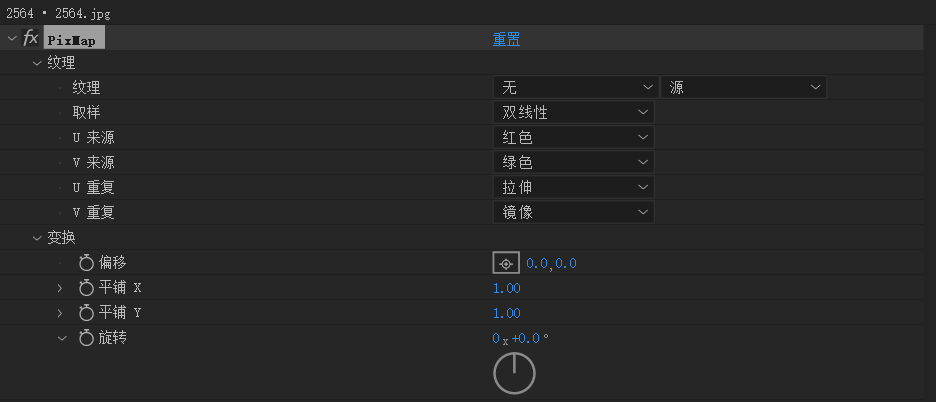 - 每个水平和垂直跨度均有 UV 包裹模式(重复、夹紧、镜像重复)