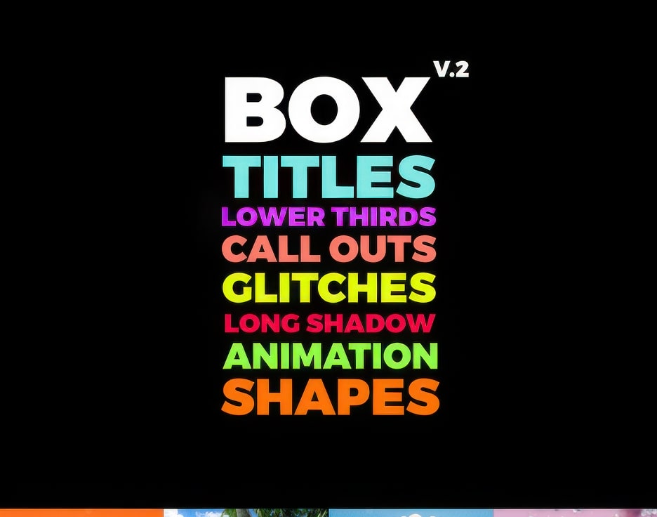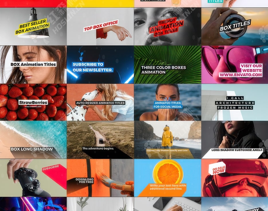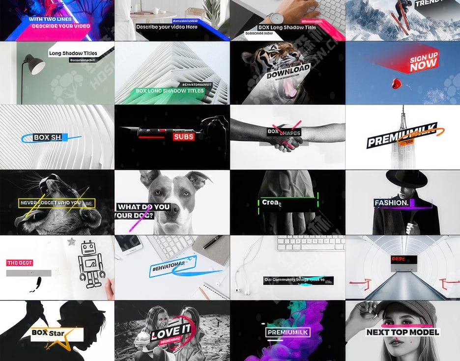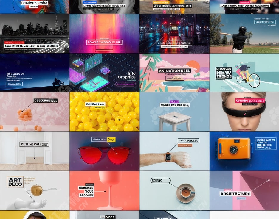 - 7 个类别(动画、标题、下三分之一、长阴影、标注、形状、故障)